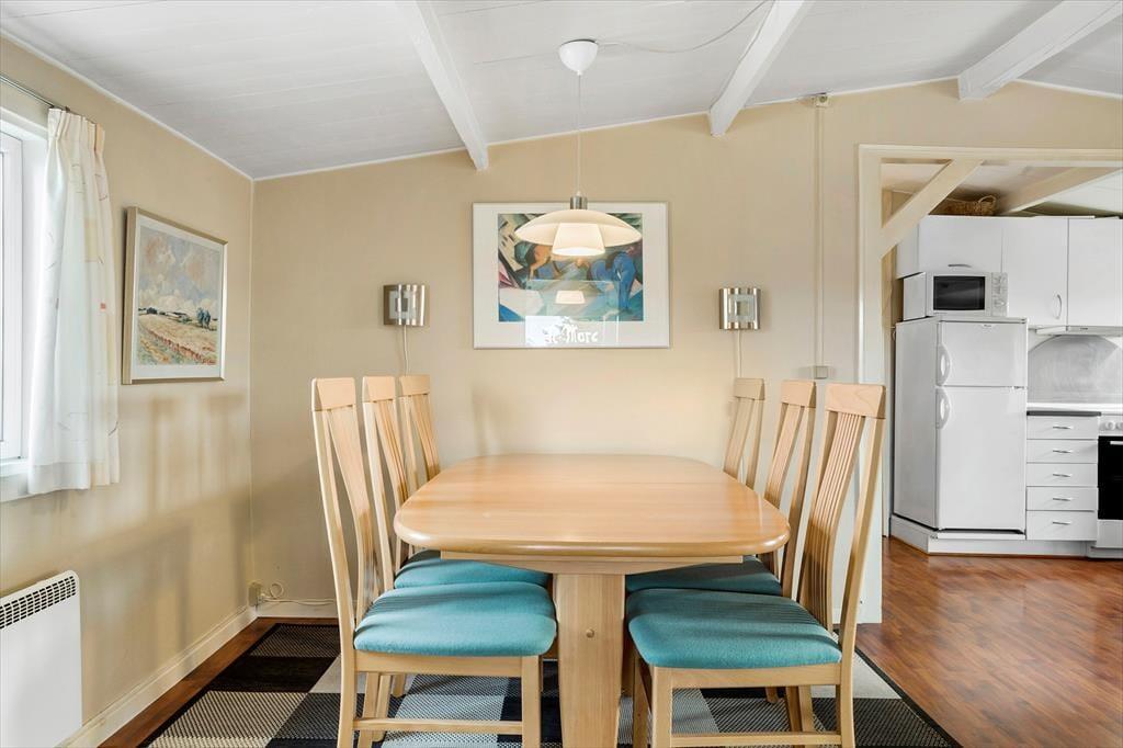 Træd ind i dette hyggelige sommerhus, hvor brændeovnen skaber en varm og indbydende stemning. Her kan du mærke, hvordan hverdagens stress forsvinder, når du tænder op i ilden og lader flammernes dansende lys fylde rummet. Sommerhusets lyse og funktionelle indretning gør det let at slappe af og skabe gode minder med dem, du holder af. Køkken-alrummet fungerer som hjemmets naturlige samlingspunkt, hvor du kan lave mad, spille spil eller bare nyde hinandens selskab.