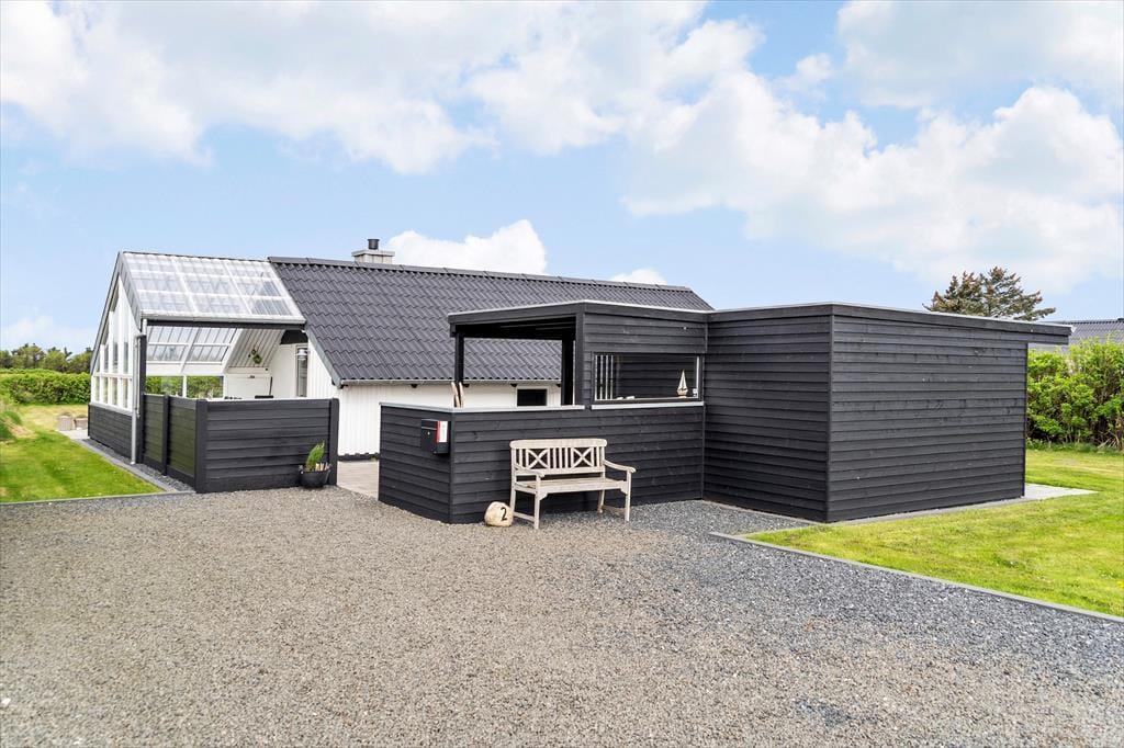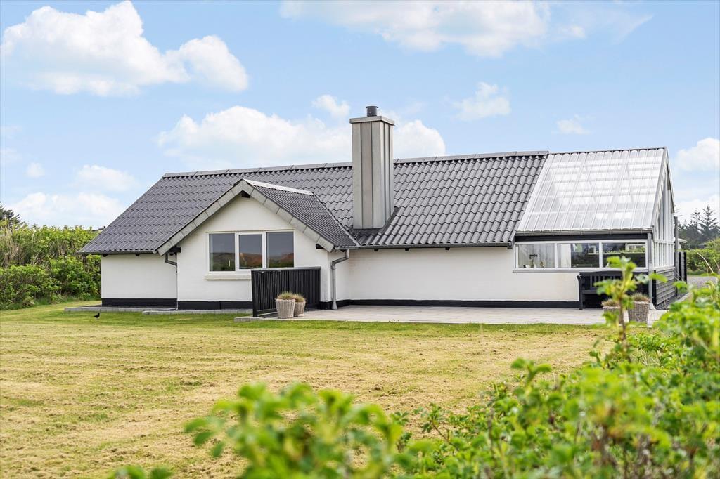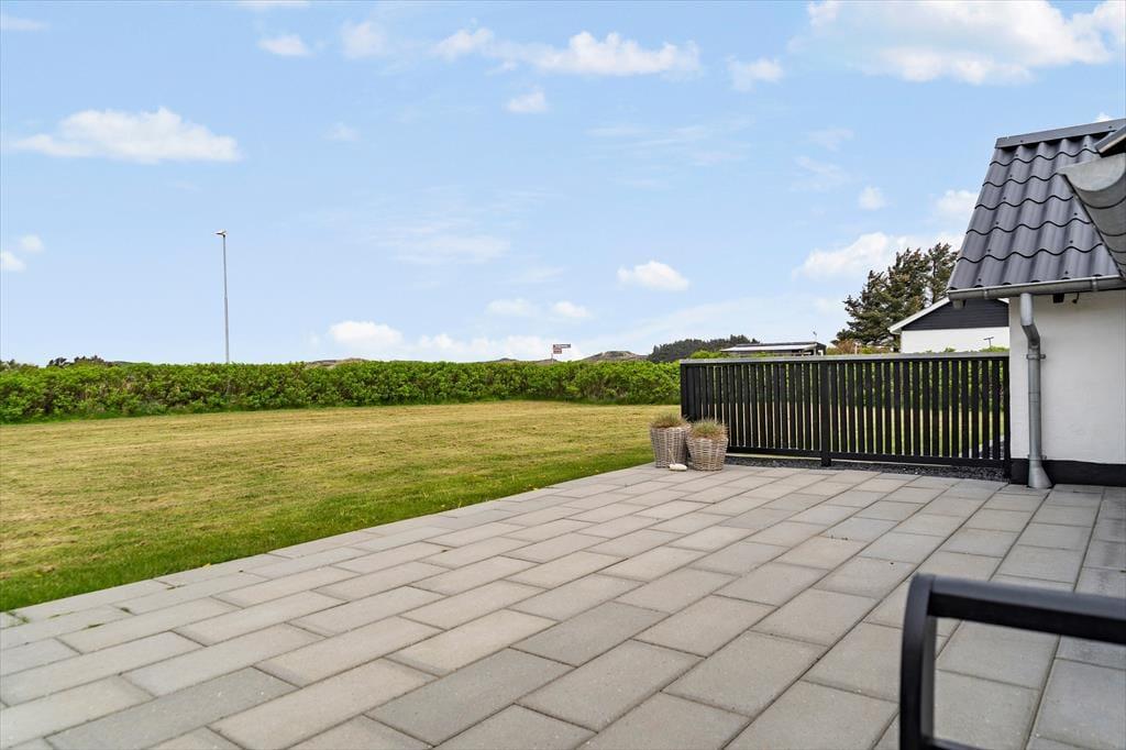 Udenfor får du masser af plads til at slappe af og nyde solen på de store terrassearealer, der omkranser huset. Her er der gode lækroge, hvor du kan finde læ og ro, og du kan vælge at tilbringe tid i solen eller finde et hyggeligt hjørne til at slappe af. Omkring huset finder du den smukke natur, og du kan nyde morgensolen på terrassen, mens du ser ud over de vidtstrakte klitter. Om aftenen er terrassen et ideelt sted at grille og hygge dig med familie og venner, mens du nyder de lyse sommeraftener.