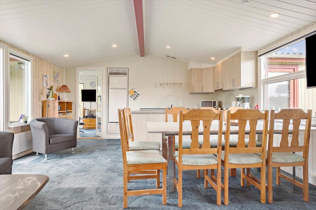 Bliv mødt af en varm og indbydende atmosfære, når du træder indenfor i dette rummelige sommerhus, der er indrettet med plads til op til 8 personer. Med sine lyse rum og moderne indretning er huset et perfekt udgangspunkt for afslapning og nærvær. Brændeovnen danner rammen om hyggelige aftener med knitrende ild. Samlingspunktet er det åbne køkken-alrum, hvor samtaler og fællesskab kan flyde frit, mens måltiderne tilberedes og nydes.