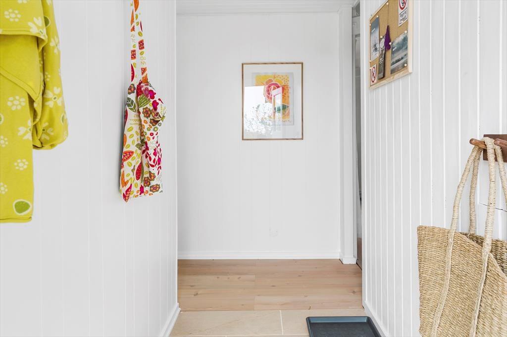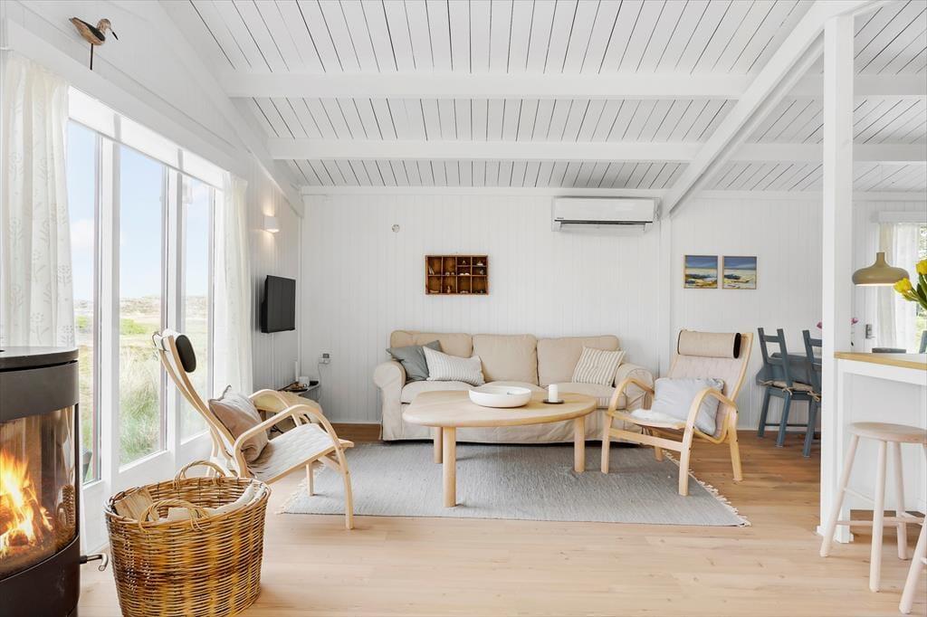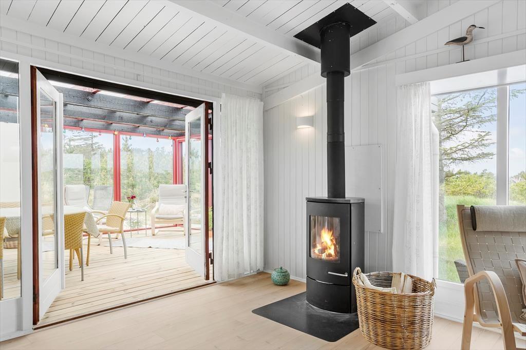 Når du træder ind i dette sommerhus, mødes du af en varm og indbydende atmosfære, hvor detaljerne afspejler den klassiske sommerhuscharme. Den lyse indretning skaber en behagelig og afslappet stemning, og med brændeovnen som naturligt samlingspunkt i stuen er hyggen sikret på kølige aftener. Her kan du lade ilden knitre, mens du nyder en god bog, et spil med familien eller blot stilheden. Køkkenet er praktisk og åbent for samvær, så du kan være en del af samtalerne, mens maden tilberedes. Alt er skabt for, at du skal føle dig hjemme – bare med lidt mere ferie.