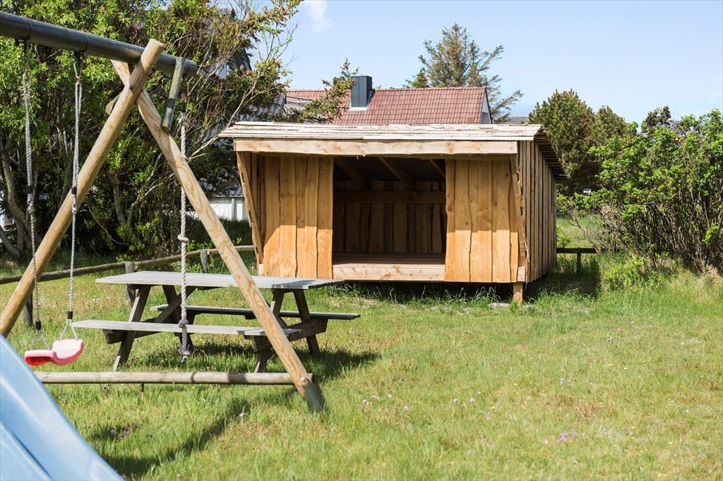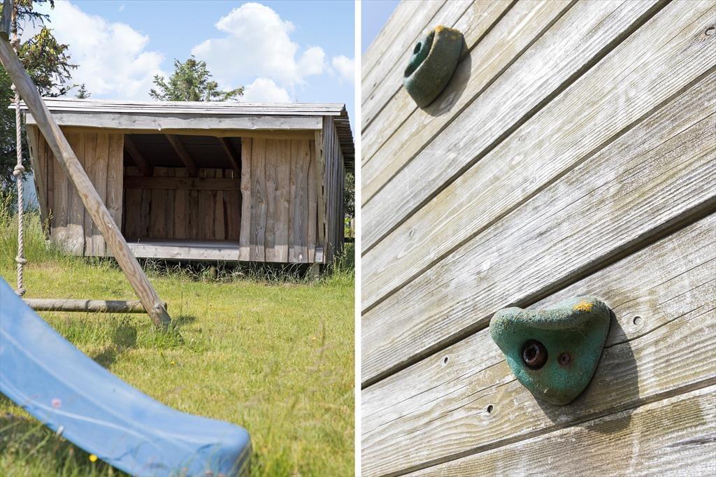 Udenfor venter en dejlig grund, der indbyder til leg, afslapning og samvær i den friske luft. Sommerhuset har en rummelig træterrasse, hvor du kan nyde morgenkaffen, grille aftensmaden eller bare læne dig tilbage og lytte til naturens lyde. Den omkringliggende have giver plads til både børneleg og en pause med familiens firbenede venner, som også er hjerteligt velkomne her. Uanset om du foretrækker at være aktiv eller blot at nyde solen, har dette sommerhus de perfekte rammer.