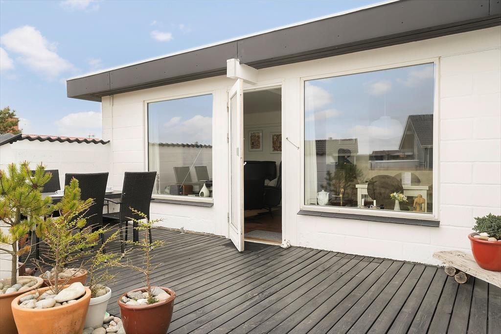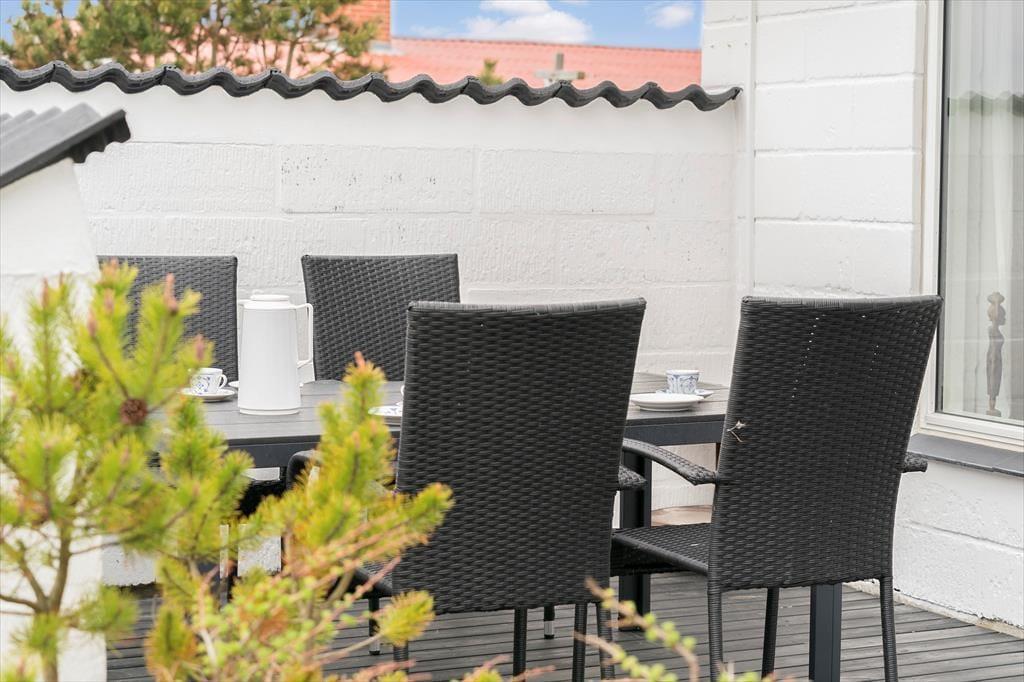 Sommerhuset ligger på en dejlig grund med plads til leg og afslapning i det fri. Den hyggelige terrasse inviterer til lange måltider i solen eller stille stunder med en kop kaffe og udsigt til naturen. For jer, der har firbenede familiemedlemmer med, er grunden også et godt sted for hunde at boltre sig. Her kan I starte dagen med morgenkaffen til fuglekvidder eller slutte den af med en grillaften, mens solen går ned. Sommerhuset ligger tæt på havet, så en spontan gåtur på stranden er altid inden for rækkevidde.