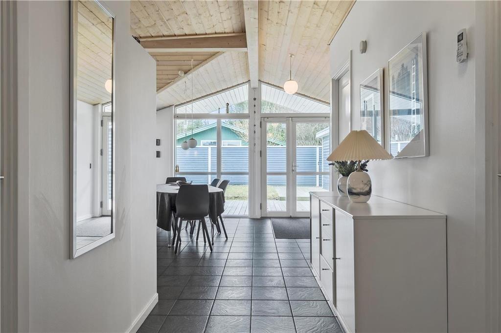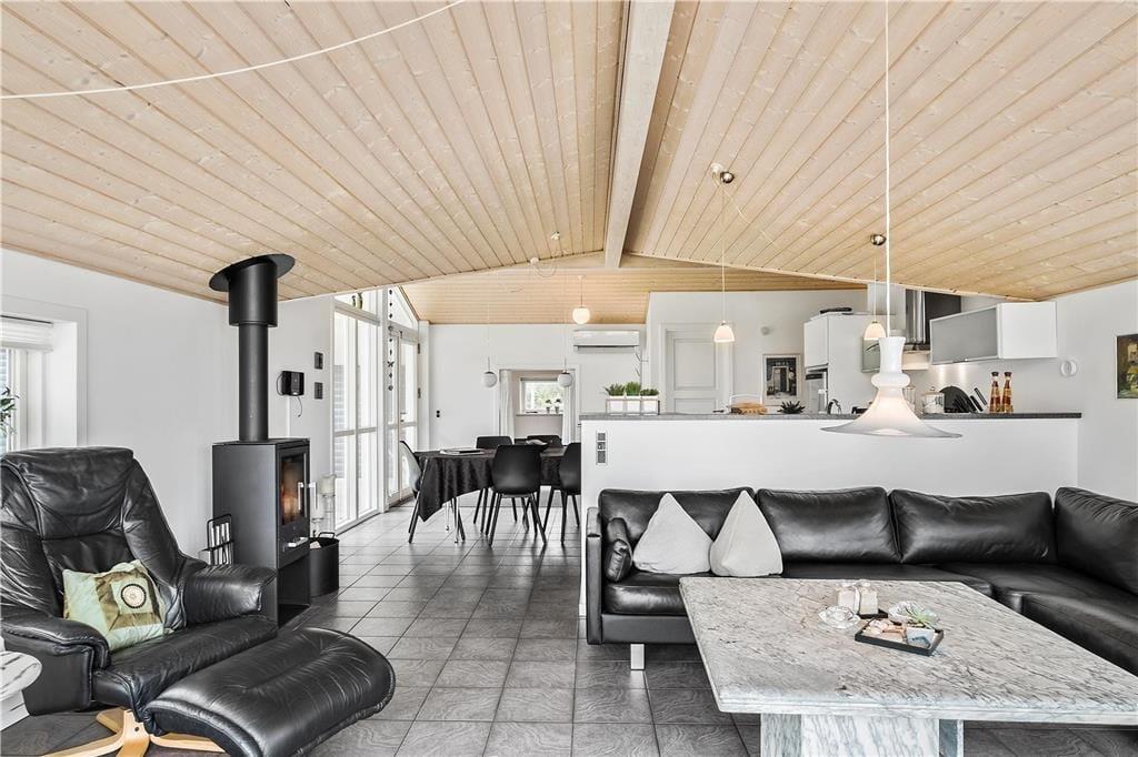 Dette sommerhus er en sand oase af hygge med sin smagfulde indretning og varme atmosfære. Når du træder ind, bliver du mødt af en rummelig og velindrettet stue, hvor brændeovnen hurtigt bliver samlingspunktet for hyggelige aftener. Forestil dig at sidde her med en kop varm kakao, mens ilden knitrer, og lyset fra flammerne skaber en afslappet stemning. Køkkenet er funktionelt og åbent, så du nemt kan kokkerere samtidig med, at du nyder samværet med dine nærmeste. Dette er et sted, hvor du straks føler dig hjemme – et sted, der indbyder til nærvær og gode stunder.