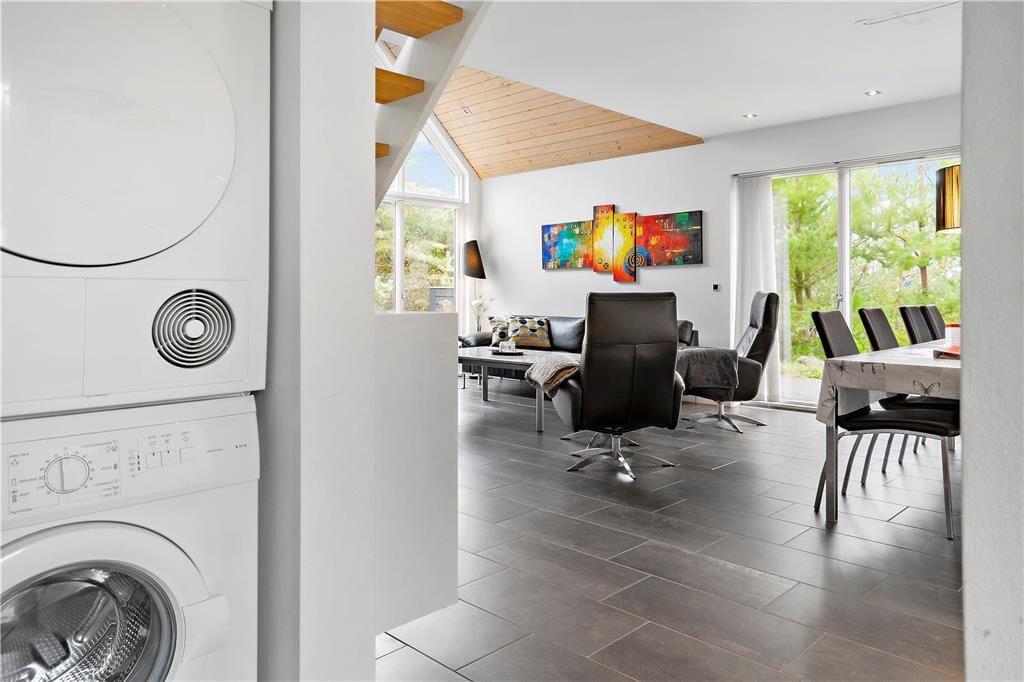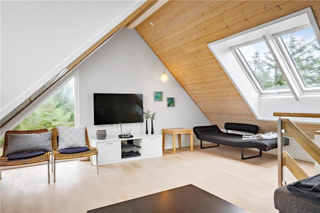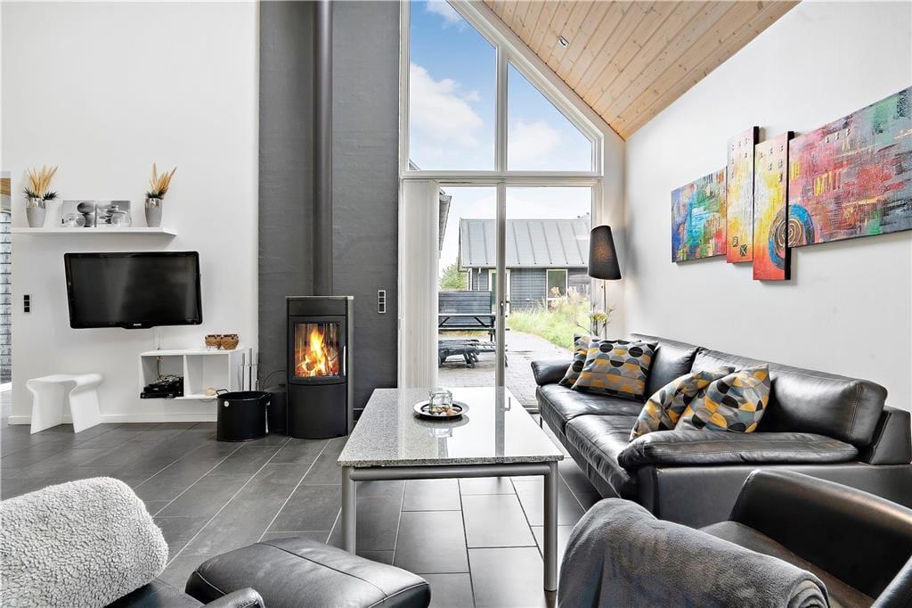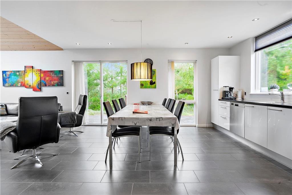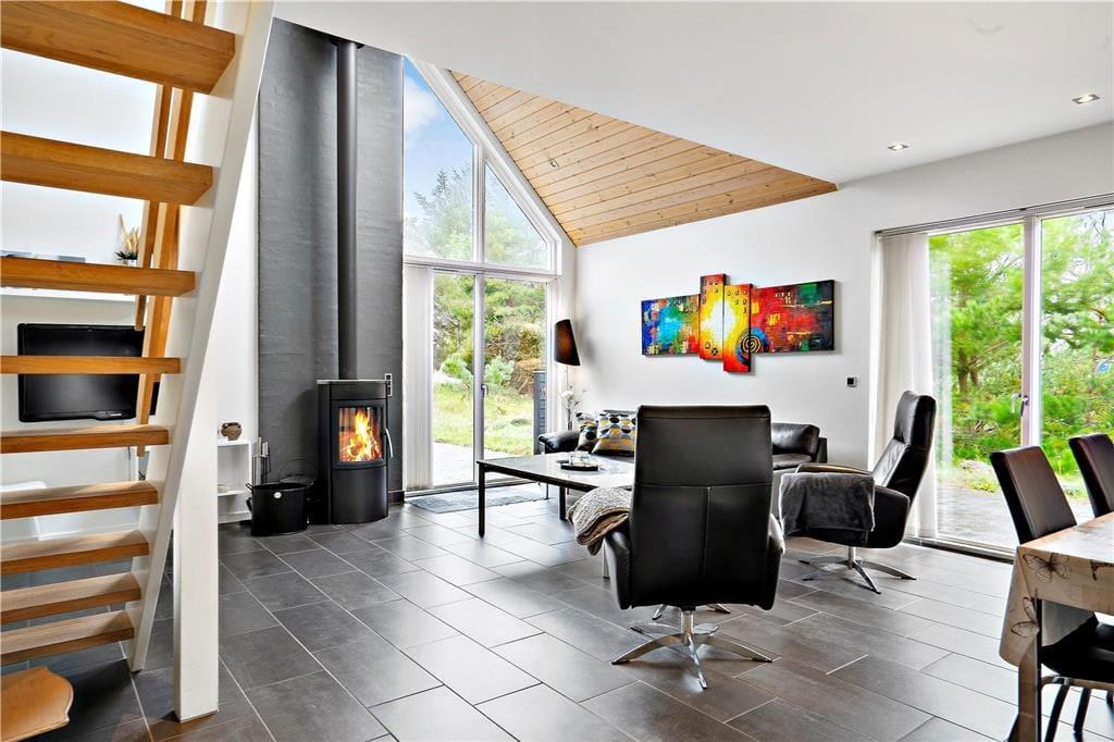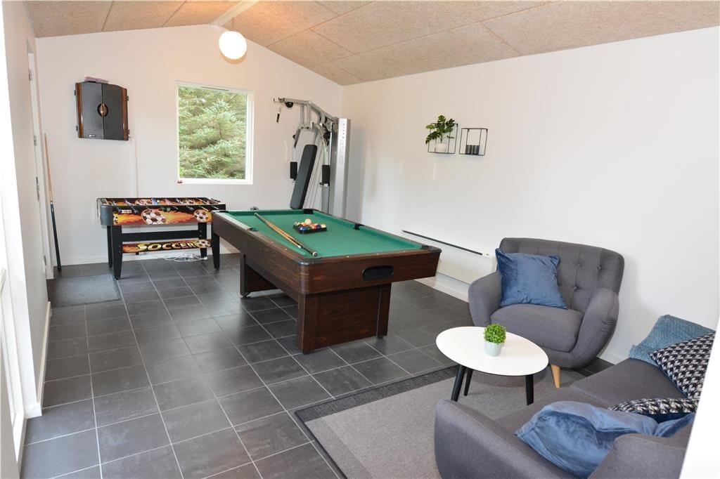 Dette sommerhus inviterer dig indenfor med en varm og hjemlig atmosfære, hvor både moderne komfort og klassisk sommerhushygge går op i en højere enhed. Brændeovnens knitren spreder varme og stemning i stuen, mens rummelige opholdsområder giver plads til samvær og afslapning. Aktivitetsrummet er perfekt til sjov og konkurrence med venner og familie – her kan I nyde spil og aktiviteter på de dage, hvor vejret måske ikke indbyder til udendørseventyr. Efter en dag fuld af oplevelser kan du lade spændingerne forsvinde i husets sauna eller spabad og finde ro og velvære i den rolige atmosfære.