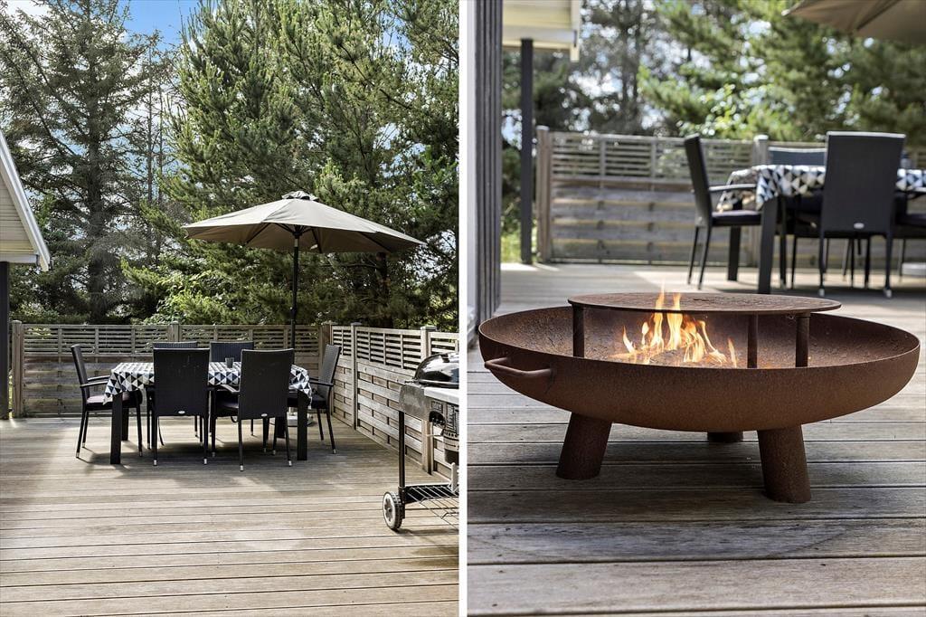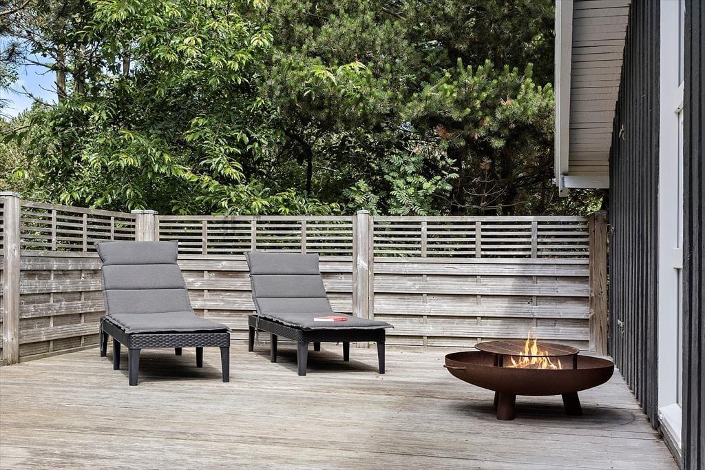 Udenfor venter en skøn, afskærmet terrasse, hvor du kan nyde roen og privatlivet, omgivet af den smukke natur. Her finder du altid et sted med sol eller skygge, og det indbyder til lange dage under åben himmel. Start dagen med morgenkaffe på terrassen, mens fuglene synger i træerne, eller tilbring lune sommeraftener med grillhygge, mens du mærker brisen fra Vesterhavet. Grunden er ideel til afslapning, og den omgivende natur giver en følelse af fred og ro, hvor hele familien kan finde plads til både leg og fordybelse.