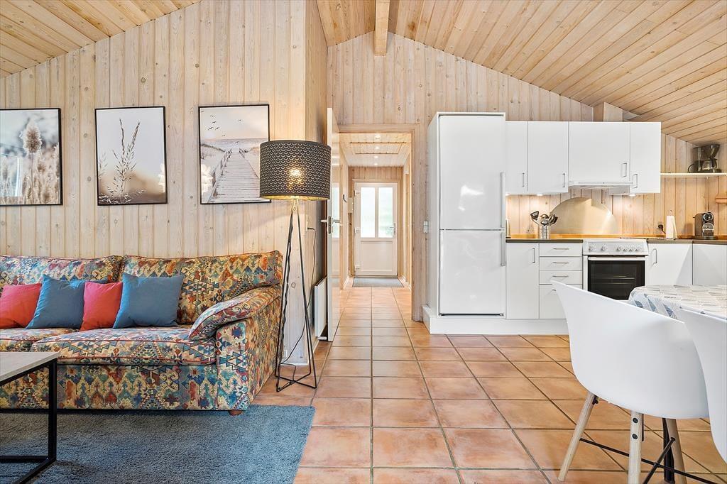 Træd ind i et lyst og åbent køkkenalrum, der straks emmer af hygge og afslapning. Her kan du samle familien om brændeovnen på de kølige aftener og mærke varmen brede sig, mens flammerne knitrer. Huset er indrettet med tre rummelige soverum, hver udstyret med en dobbeltseng, så der er god plads til op til seks personer. Det åbne køkken gør det nemt at tilberede feriens måltider i fællesskab, og med den energibesparende brændeovn kan du skabe den perfekte atmosfære, uanset årstiden. Efter en lang dag i den friske luft er der mulighed for ren afslapning i sommerhusets sauna – her kan du lade stressen fra hverdagen fordampe og forkæle dig selv med en stille stund i varmen.