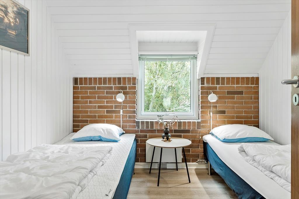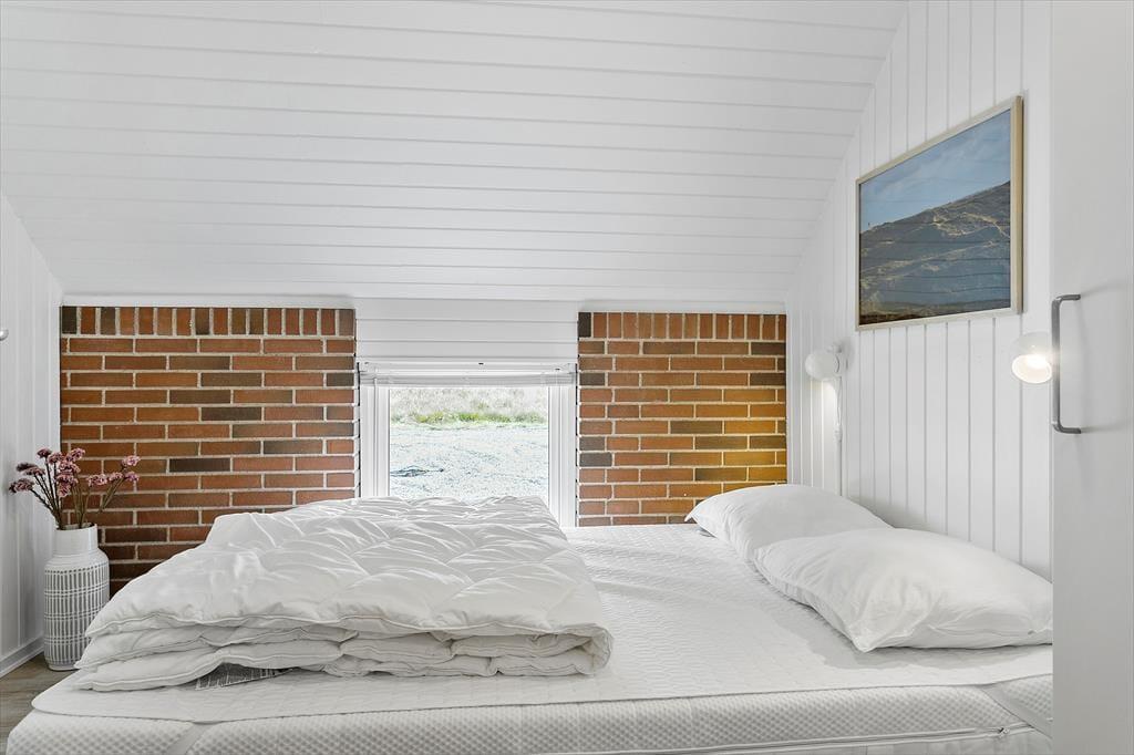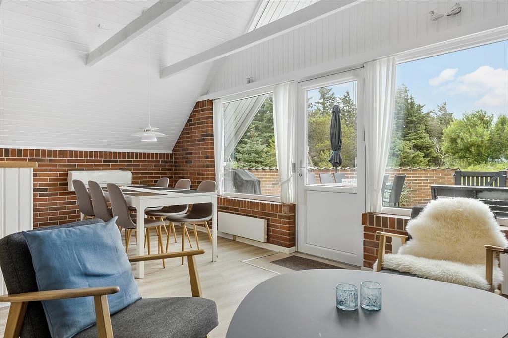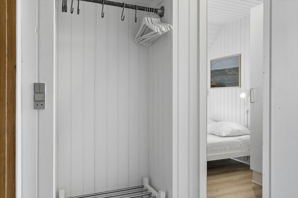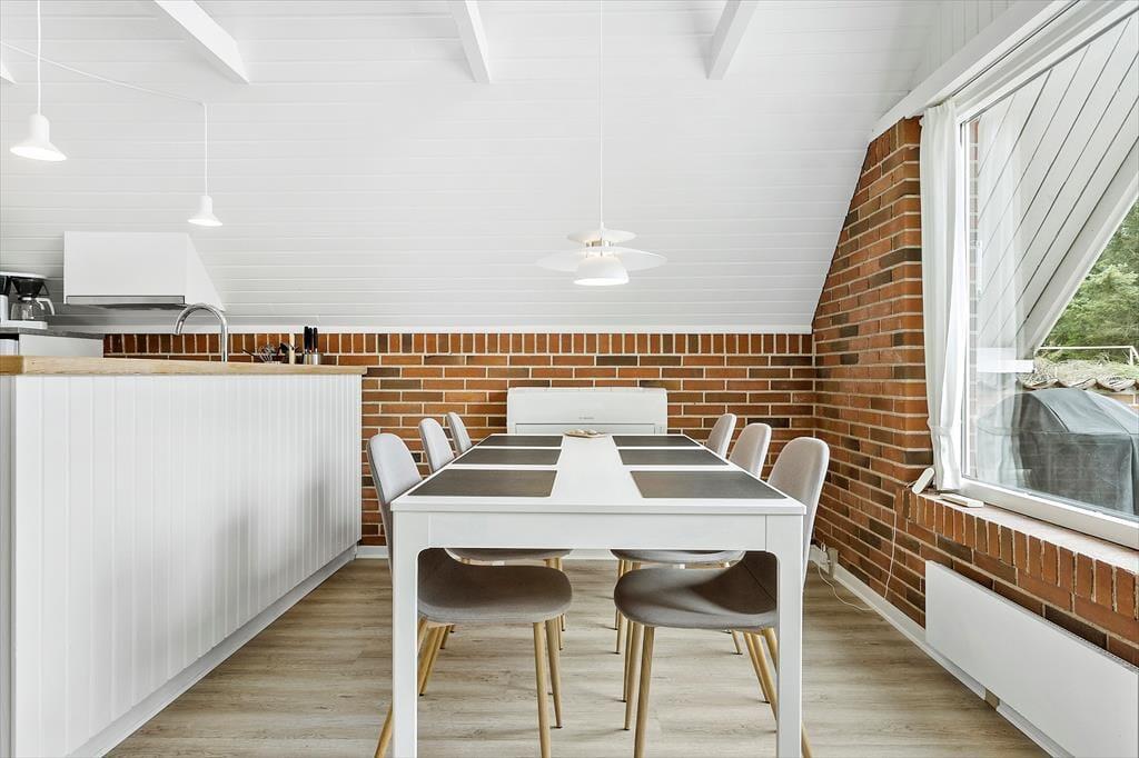 Træd indenfor i dette lysfyldte og indbydende sommerhus, hvor de tre velindrettede soveværelser lover rolig søvn og drømme fyldt med havets Brusen. Det åbne køkken-alrum, smukt integreret med stuearealet, danner hjertet i hjemmet. Her kan familien samles om måltiderne, mens dagens eventyr planlægges ved det store spisebord, eller mens I slapper af i sofaen med en god bog og lyden af knitrende ild fra brændeovnen. Denne varmekilde sammen med en effektiv varmepumpe sikrer en behagelig temperatur året rundt, samtidig med at det er energibesparende.