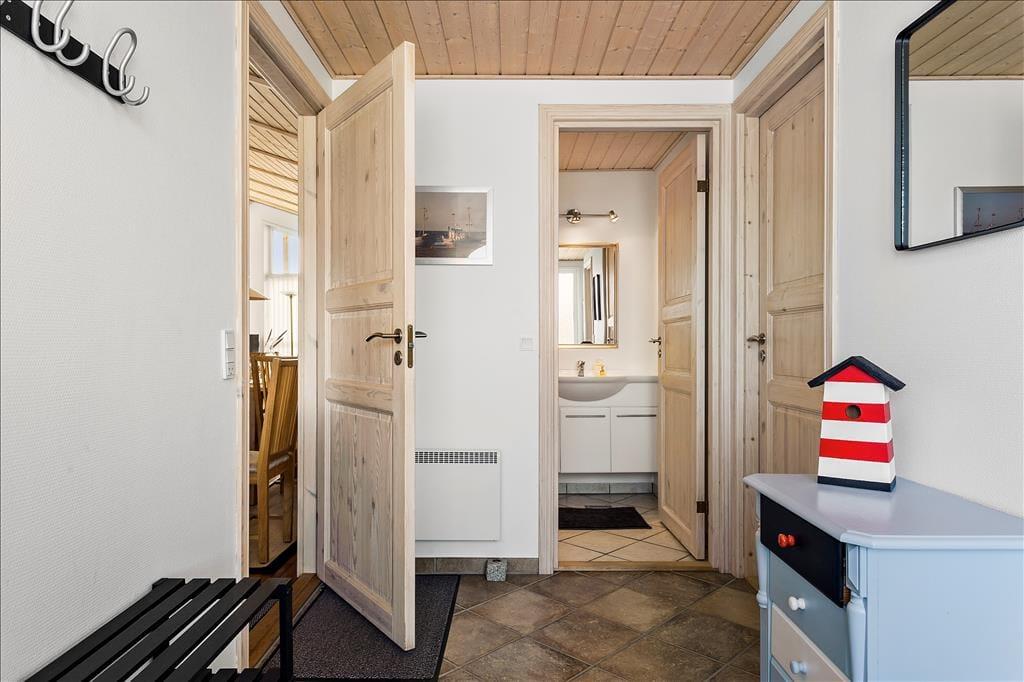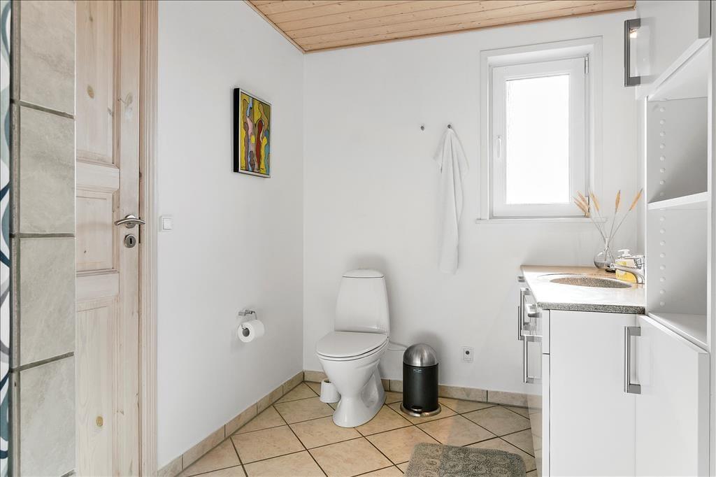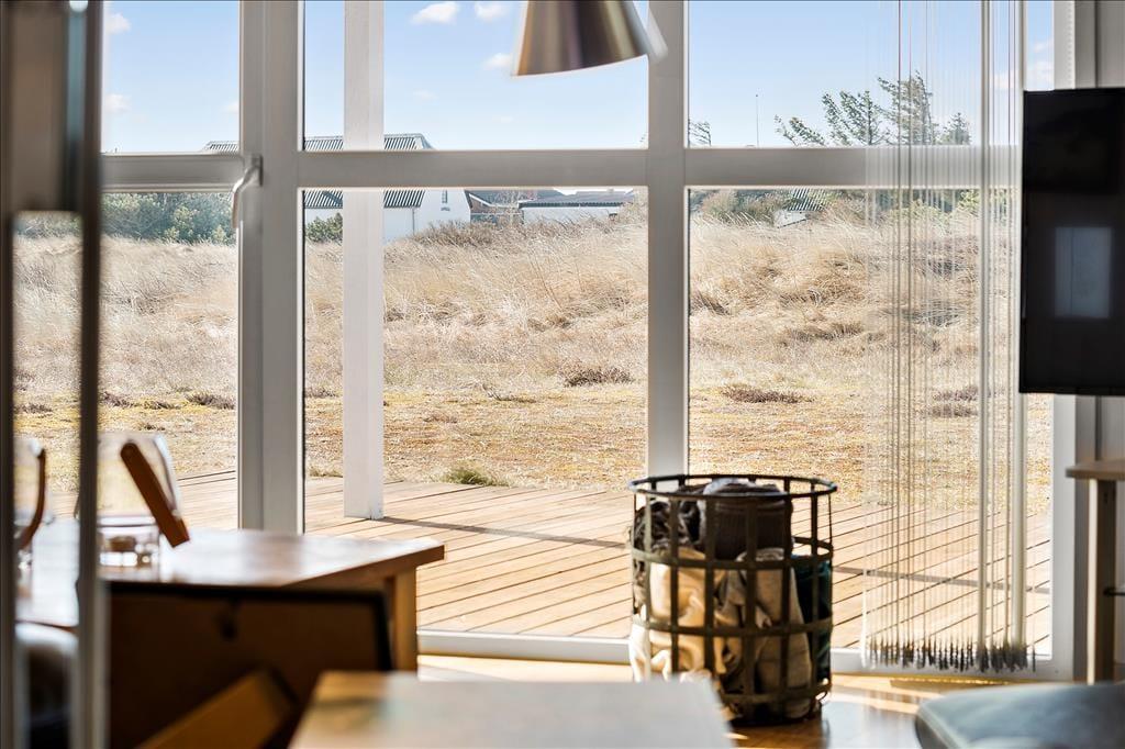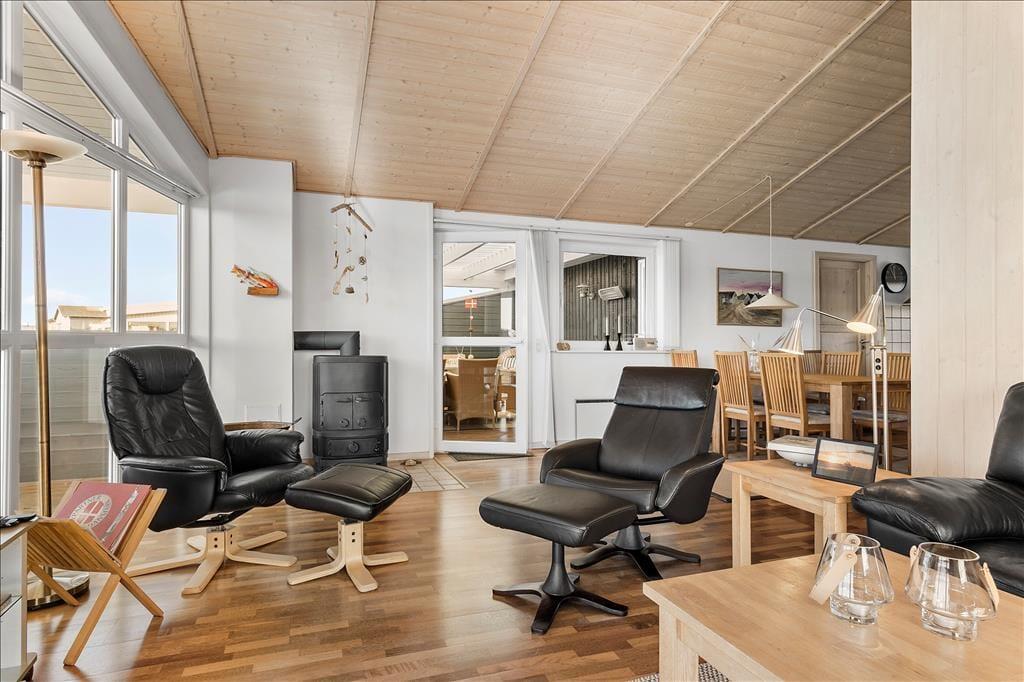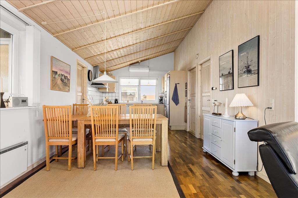 Når du træder indenfor i dette hyggelige sommerhus, bliver du straks mødt af en varm og indbydende atmosfære. Brændeovnen står klar til at sprede varme og hygge på de kølige aftener, mens husets indretning indbyder til afslapning og samvær. Her kan du finde roen efter en aktiv dag i naturen, om det er med en god bog, et brætspil eller bare i selskab med dem, du holder af. Sommerhusets funktionelle indretning og lysindfald fra de store vinduer sikrer, at du føler dig hjemme, uanset årstiden.