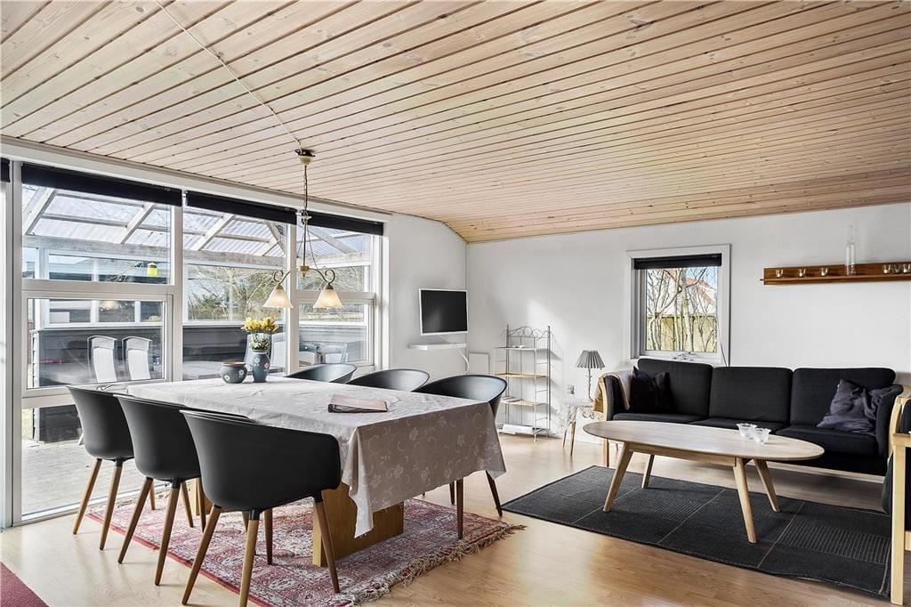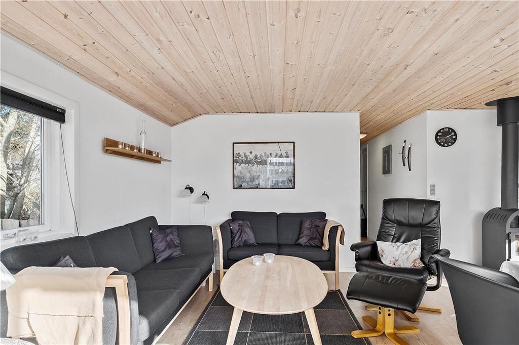 Sommerhuset emmer af hygge og varme fra det øjeblik, du træder ind ad døren. Det åbne opholdsrum med brændeovn og varmepumpe danner rammen om hyggelige aftener med samvær og afslapning. Her kan du samle familien omkring bordet til brætspil eller synke ned i sofaen med en god bog, mens ilden knitrer i brændeovnen. Køkkenet er veludstyret og gør det nemt at lave måltider, som kan nydes både inde og ude. De lyse værelser inviterer til ro og afslapning, så du kan vågne frisk og veludhvilet til en ny dag fuld af oplevelser.