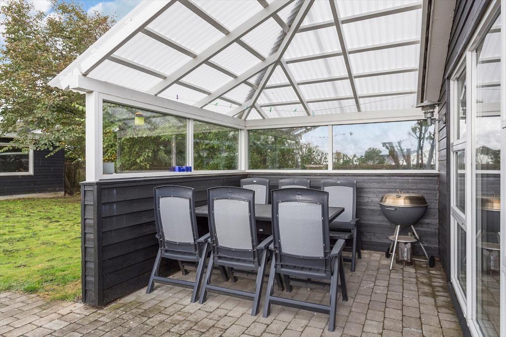 Udendørs finder du en stor, ugeneret grund med plads til både leg og ro. På terrassen kan du starte dagen med morgenkaffe, mens solen bryder frem, og fuglene kvidrer i baggrunden. Om aftenen er terrassen det perfekte sted til en grillmiddag under åben himmel. Sommerhuset er omkranset af grønne omgivelser, der indbyder til både afslapning og aktiviteter, og du kan lade hunden løbe frit omkring, mens børnene leger på græsplænen.
