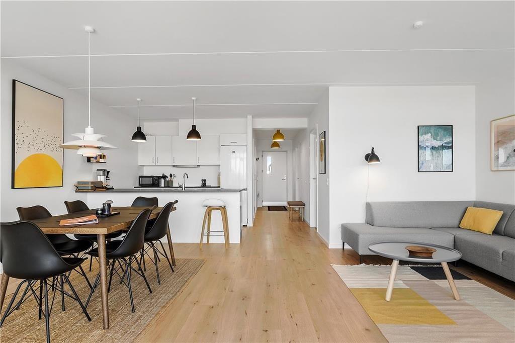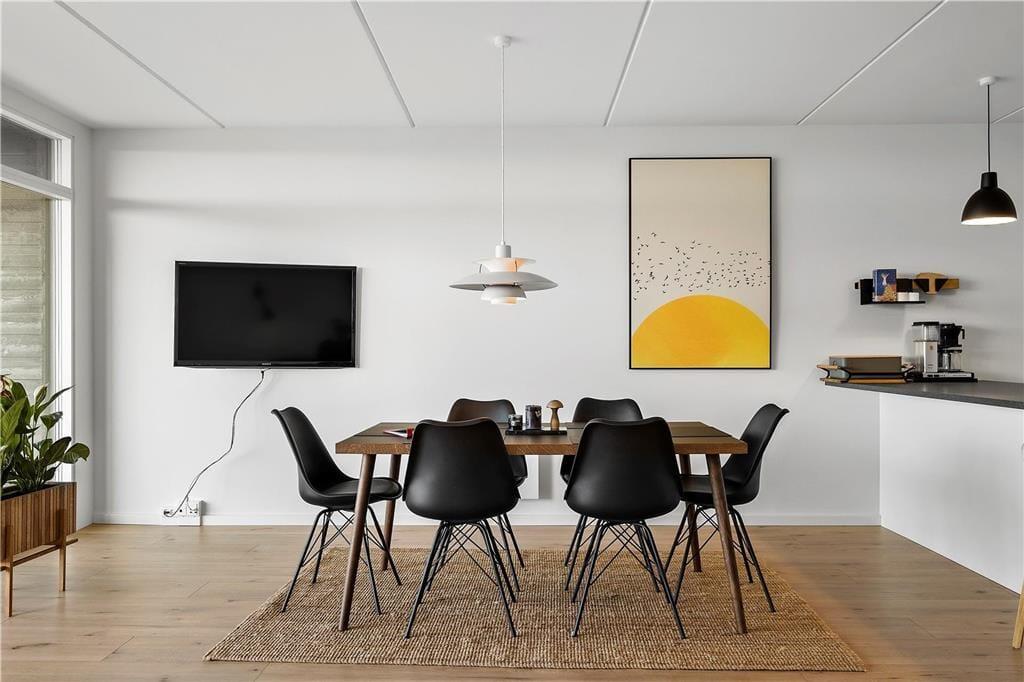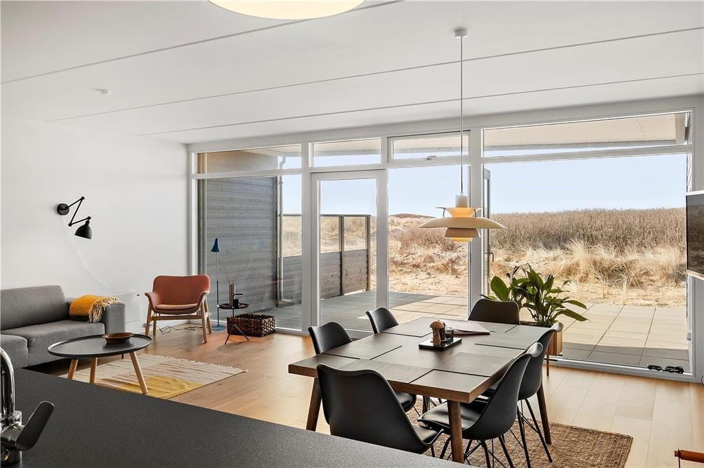 Træd ind i dette indbydende sommerhus, hvor moderne design møder hyggelig atmosfære. Den åbne planløsning skaber et lyst og rummeligt miljø, ideelt til afslapning og samvær. Den stilfulde indretning og de nøje udvalgte detaljer bidrager til en følelse af luksus og komfort. Her kan du nyde hyggelige aftener med familien, mens vinden suser udenfor.