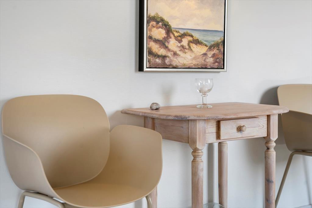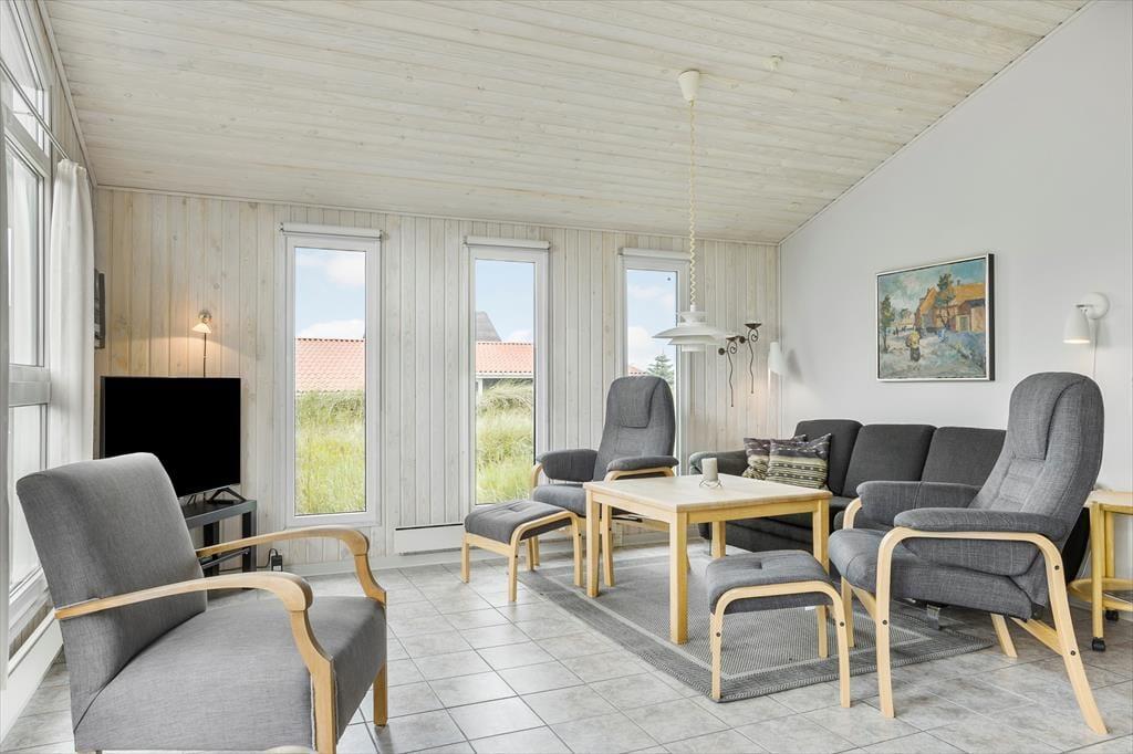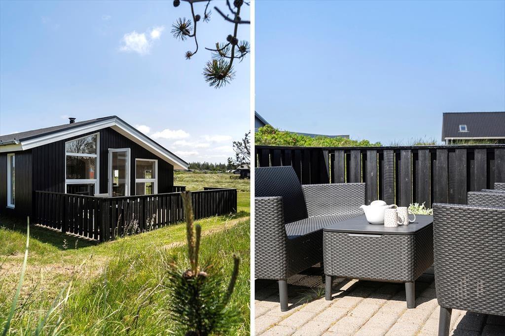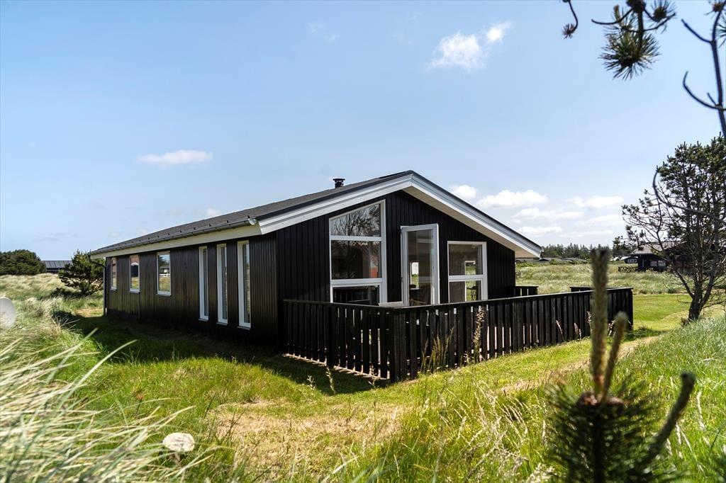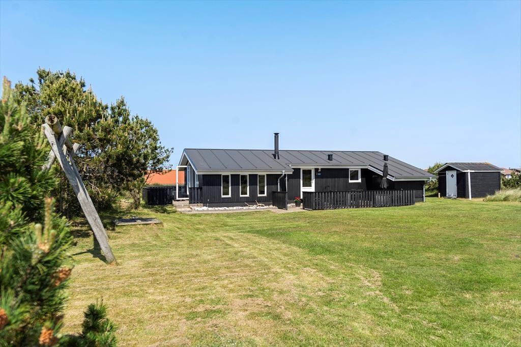 Sommerhuset er omgivet af en dejlig terrasse, hvor du kan nyde morgenkaffen i solen eller grille om aftenen, mens solen går ned over klitterne. Den lukkede have giver både børn og kæledyr mulighed for at lege frit, mens de voksne slapper af med en god bog eller et glas vin. Beliggenheden for enden af en blind vej sikrer fred og ro, så I virkelig kan koble af fra hverdagens stress og jag.