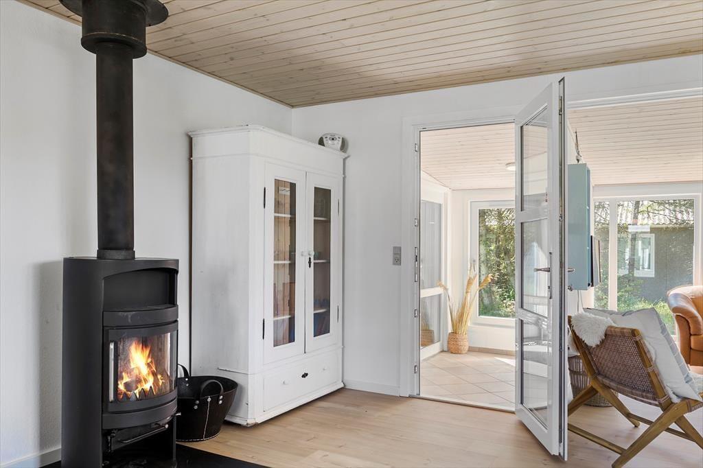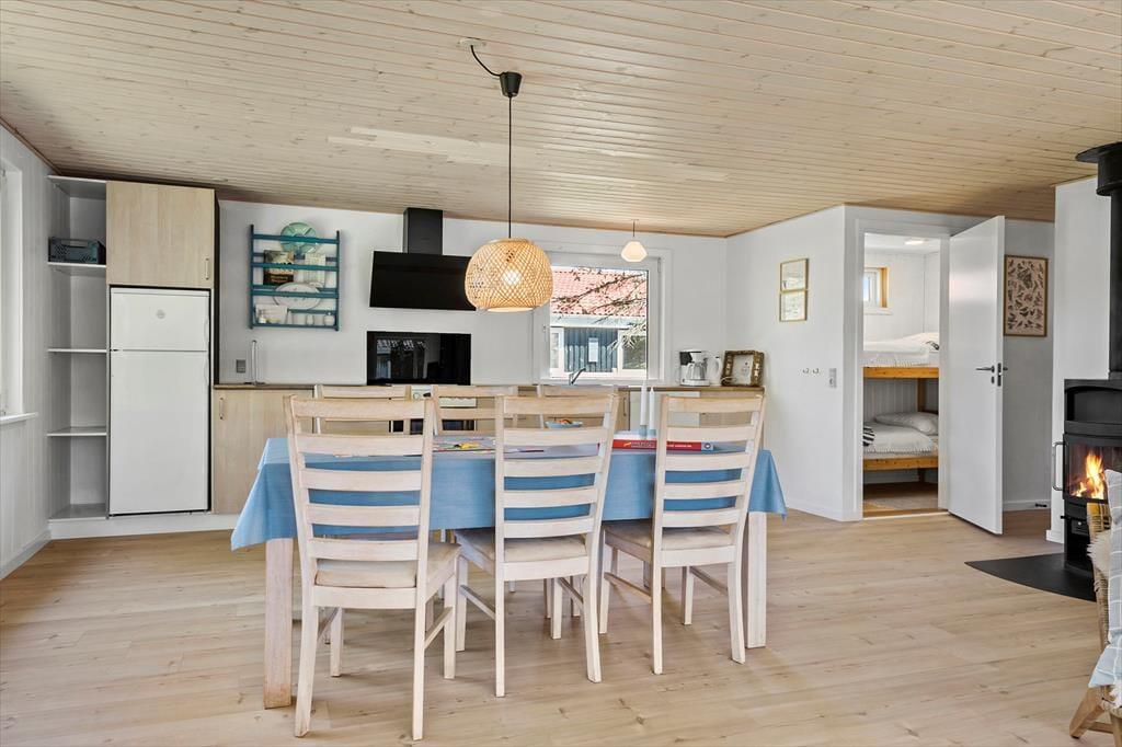 Træd ind i et lyst og indbydende sommerhus, hvor hyggen er i højsædet. Den åbne planløsning mellem køkken og stue skaber et rummeligt opholdsområde, ideelt til fælles madlavning og afslapning foran brændeovnen. Med tre soveværelser er der god plads til op til seks personer. Husets moderne faciliteter sikrer en komfortabel ferieoplevelse året rundt.