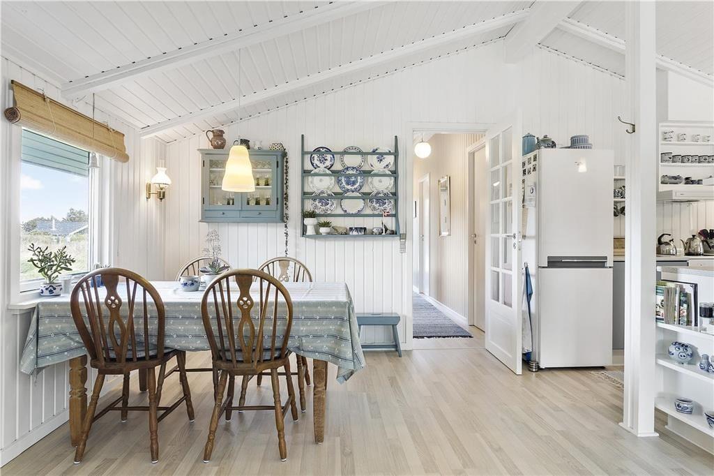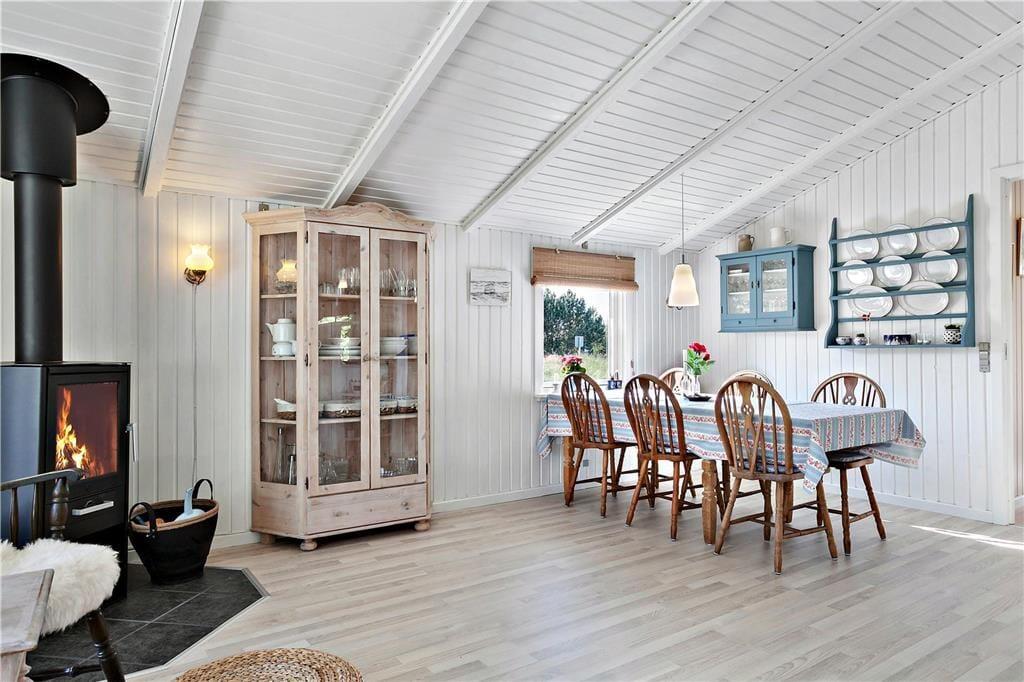 Når du træder ind i dette gennemrenoverede sommerhus, mødes du af en varm og indbydende atmosfære. De lyse rum er smagfuldt indrettet med sans for detaljen, hvilket skaber en hjemlig følelse fra første øjeblik. I opholdsrummet kan du nyde de kølige aftener foran den knitrende brændeovn, mens du lytter til træets beroligende knitren og mærker varmen brede sig. Køkkenet er veludstyret og indbyder til fælles madlavning, hvor duften af frisklavet kaffe og nybagt brød spreder sig i rummet.