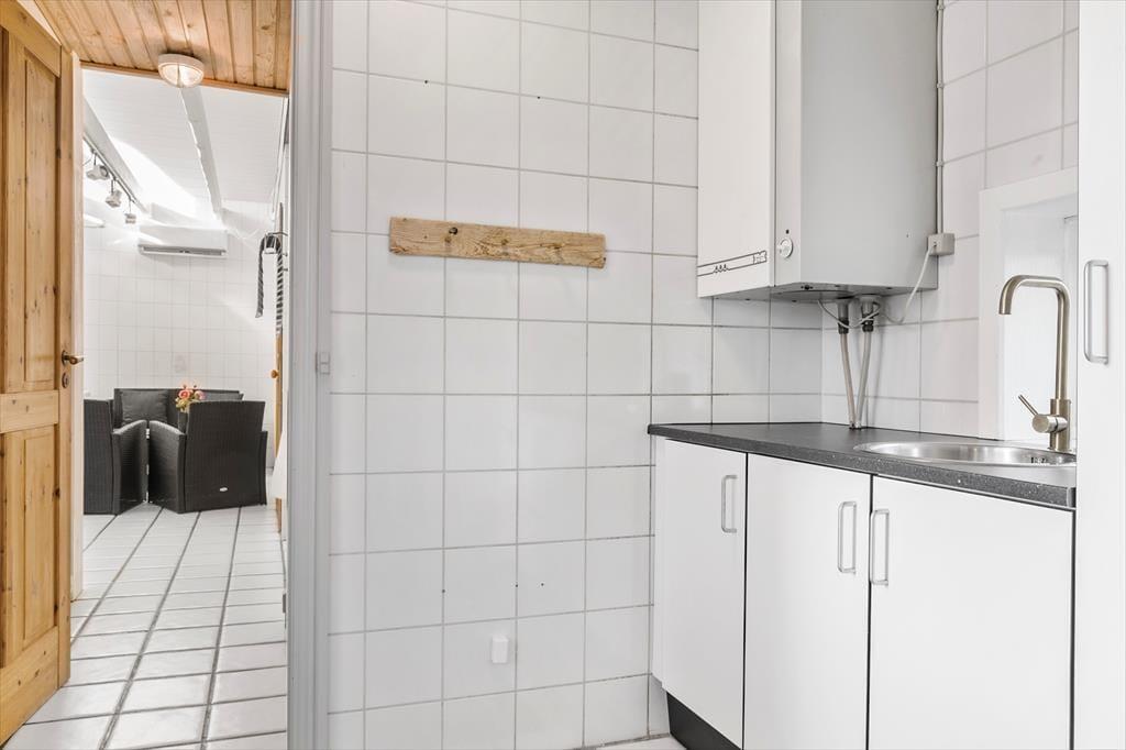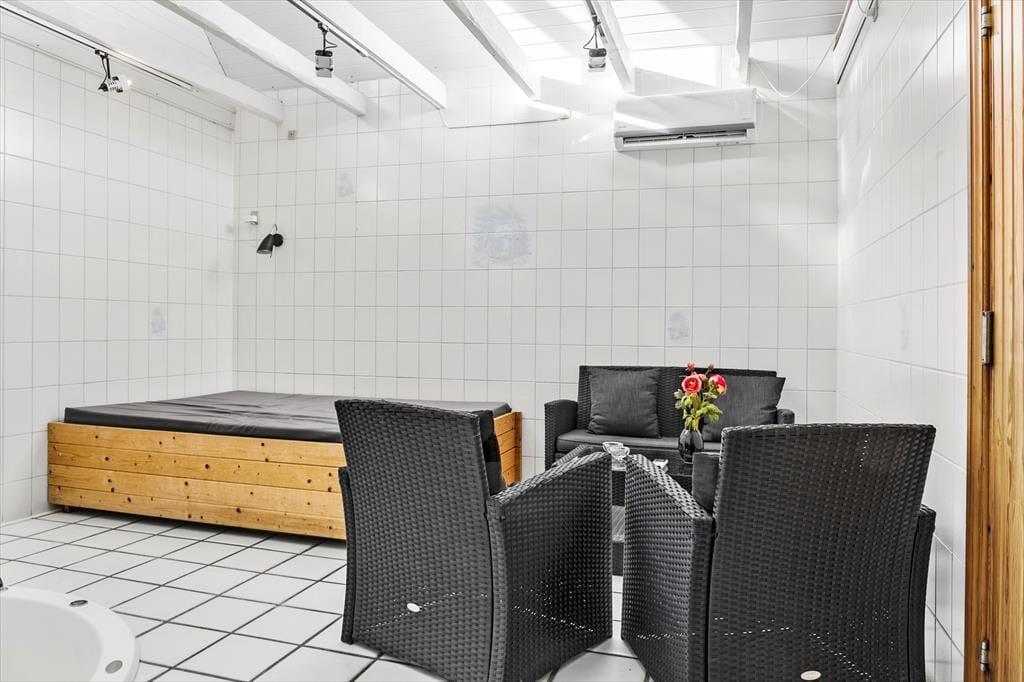 Udendørs venter en dejlig, afskærmet grund, hvor du kan nyde solen i fulde drag. Den store sydvendte terrasse er indhegnet, hvilket gør den ideel for både børn og kæledyr. Her kan du starte dagen med en kop dampende kaffe, mens du lytter til fuglenes morgensang, eller afslutte aftenen med en lækker grillmiddag under den åbne himmel. Græsplænen indbyder til leg og boldspil, og på de varme sommerdage er det oplagt at tage en kort gåtur til den nærliggende strand for en forfriskende dukkert i Vesterhavets bølger.
