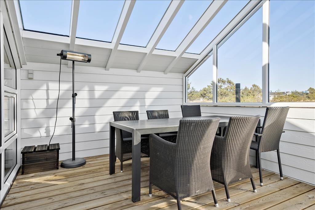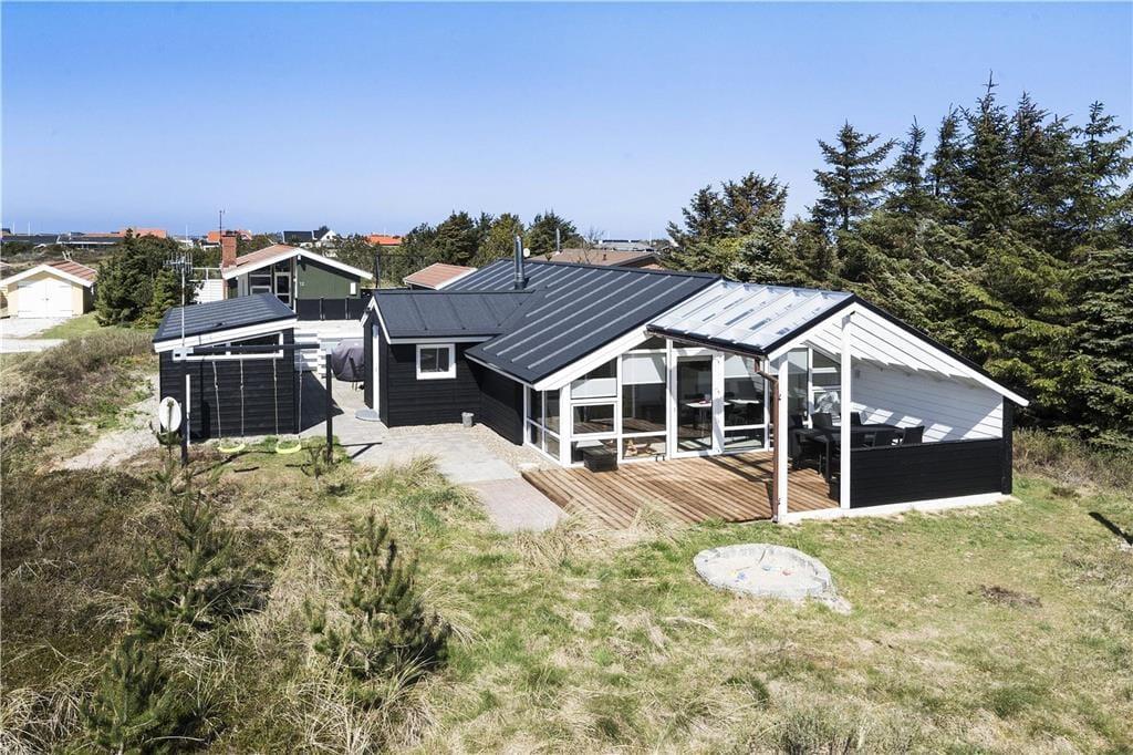Udendørs venter flere skønne terrasser og hyggelige kroge, hvor du kan slappe af i liggestolene eller nyde et måltid under åben himmel. Den store terrasse for enden af huset byder på læ og privatliv, perfekt til solbadning eller en god bog. Ved indgangen finder du endnu en afskærmet terrasse, ideel til morgenkaffen. For de yngste gæster er der gynge og sandkasse, og huset er udstyret med både barneseng og barnestol, hvilket gør det særligt børnevenligt. Og glem ikke grillen – der er intet som friskfanget fisk tilberedt på grillen, især når du befinder dig i en autentisk fiskerby som Nørre Vorupør.