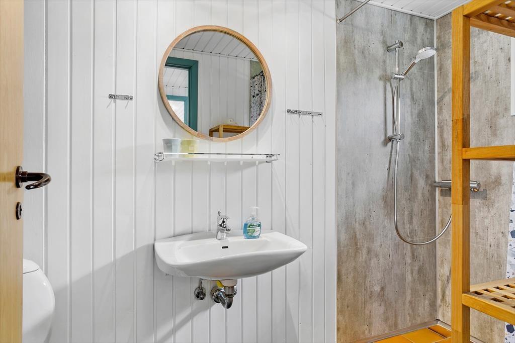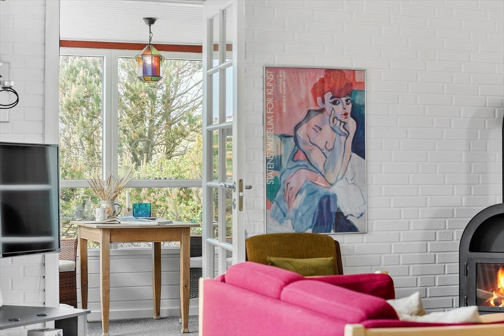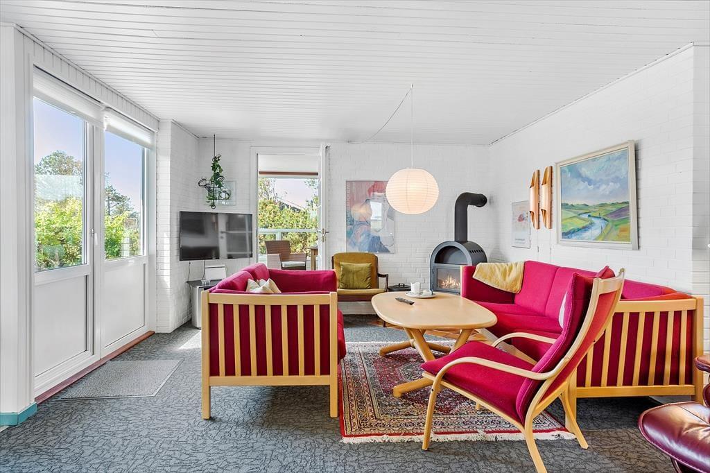 Træd ind i et hyggeligt og velholdt sommerhus, hvor der er tænkt på komfort og afslapning. Huset er indrettet med lyse trævægge og et skønt opholdsrum, hvor brændeovnen bliver det naturlige samlingspunkt. Forestil dig, hvordan flammerne knitrer, mens du nyder en god bog eller samler familien til brætspil på en kølig aften. Køkkenet er funktionelt og åbent mod stuen, hvilket skaber en indbydende atmosfære, hvor samvær er i fokus. Der er plads til op til seks personer i husets tre hyggelige soveværelser, hvilket gør det perfekt til både børnefamilier og venner på tur.