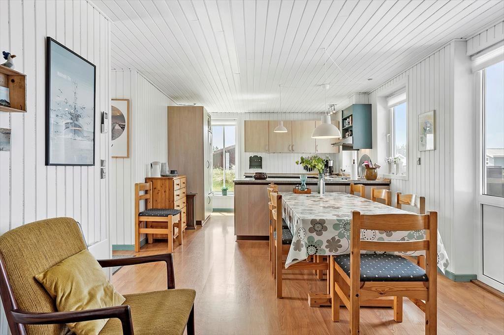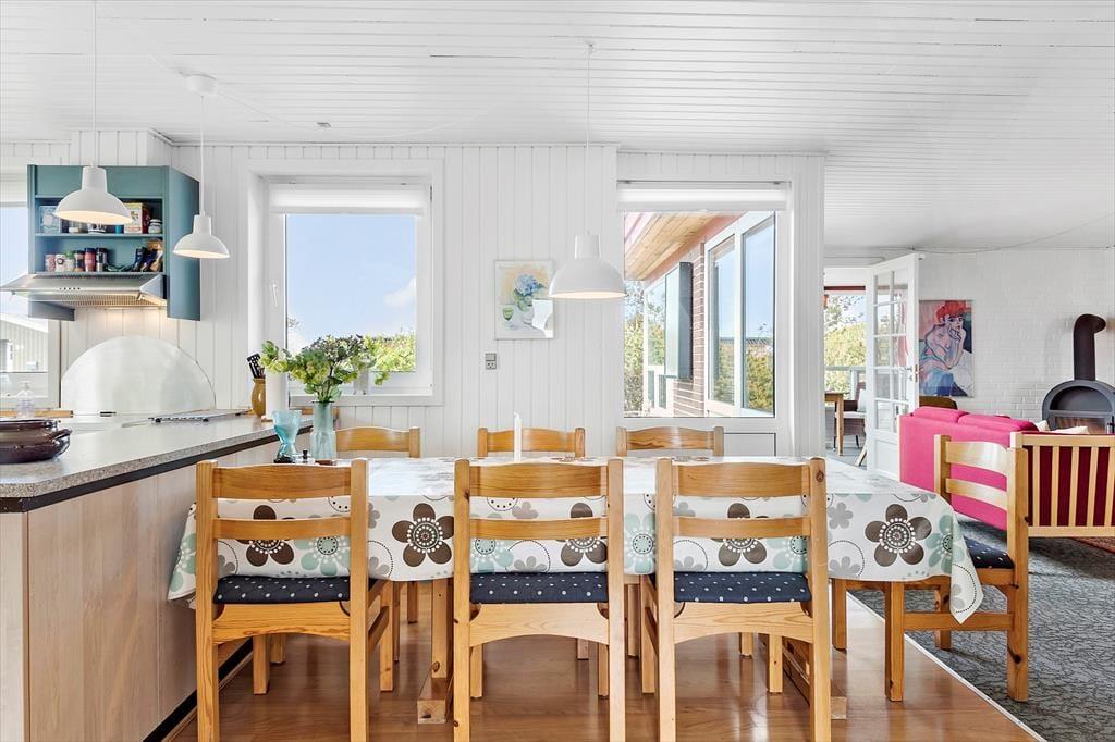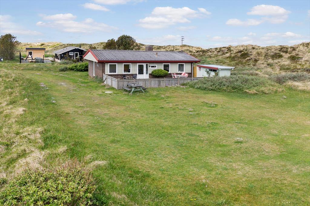 Sommerhuset ligger i første række til klitterne, hvilket giver en enestående mulighed for at opleve naturen helt tæt på. Træd ud på terrassen og nyd morgenkaffen i den friske havluft, mens du lytter til bølgernes brus i det fjerne. Den ugenerede beliggenhed sikrer privatliv og ro, så du kan slappe af i solen eller nyde lange måltider under åben himmel. Uanset om du vil tage en dukkert i havet, bygge sandslotte med børnene eller blot slentre en tur i klitlandskabet, har du alle muligheder lige uden for døren.