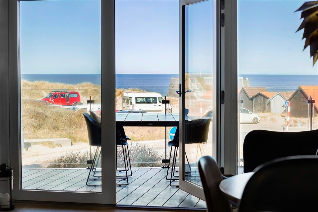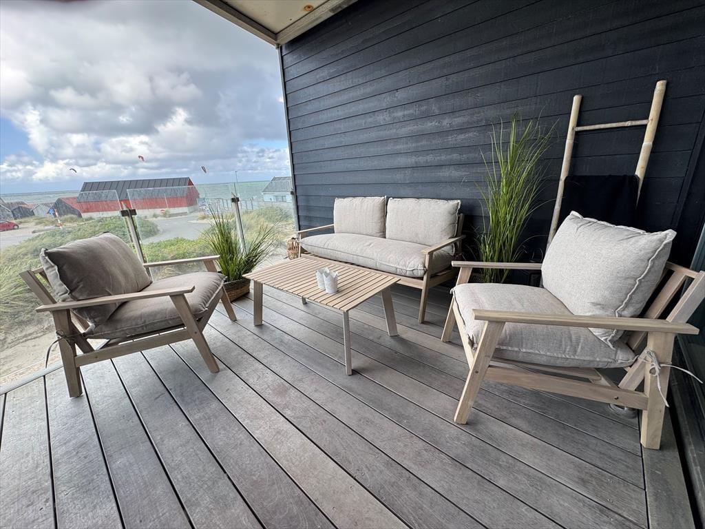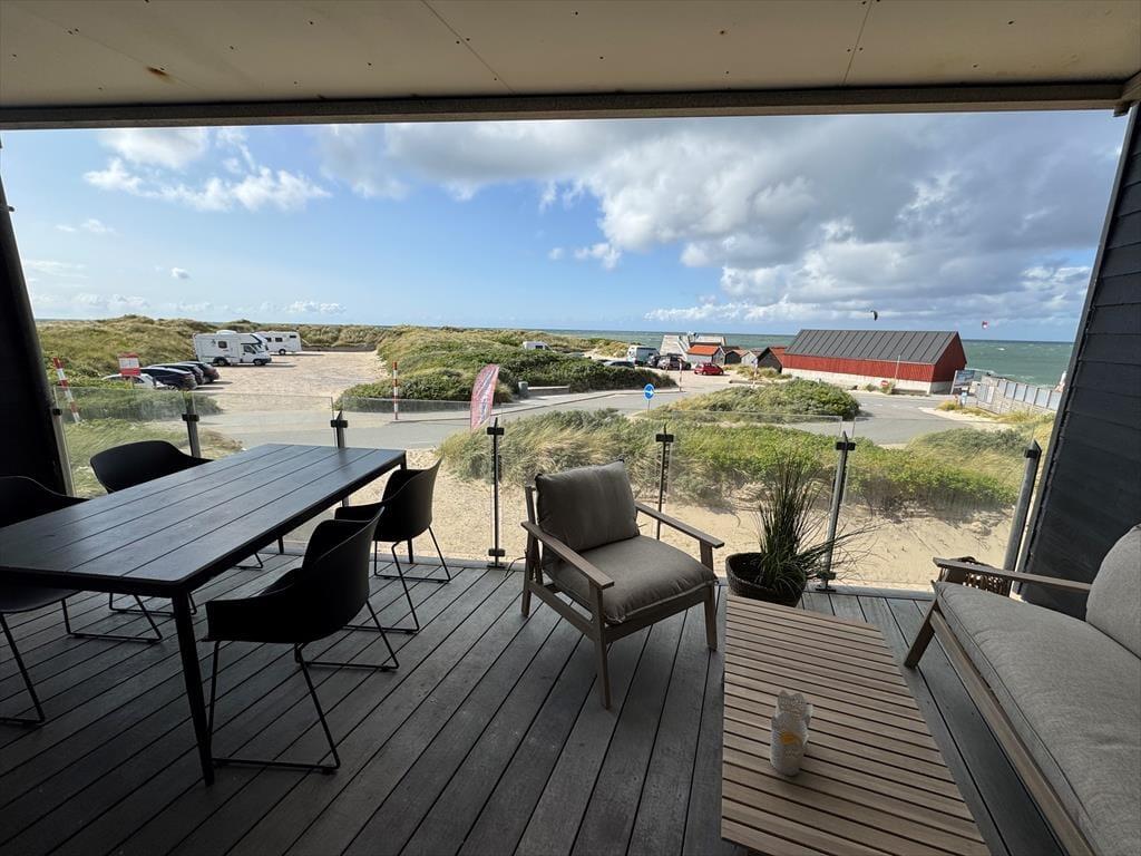 Udenfor venter en skøn terrasse, hvor du kan starte dagen med en kop kaffe, mens du nyder den fantastiske udsigt over havet og de vidtstrakte klitlandskaber. Med kun få skridt til stranden er det let at tage en spontan gåtur langs vandet eller mærke sandet mellem tæerne. Sommerhuset har også et dejligt udendørs spiseområde, perfekt til lange sommeraftener med grill og hyggelige samtaler. Området omkring huset indbyder til afslapning og ro, hvor du kan lade tankerne vandre og virkelig nyde ferien i naturskønne omgivelser.