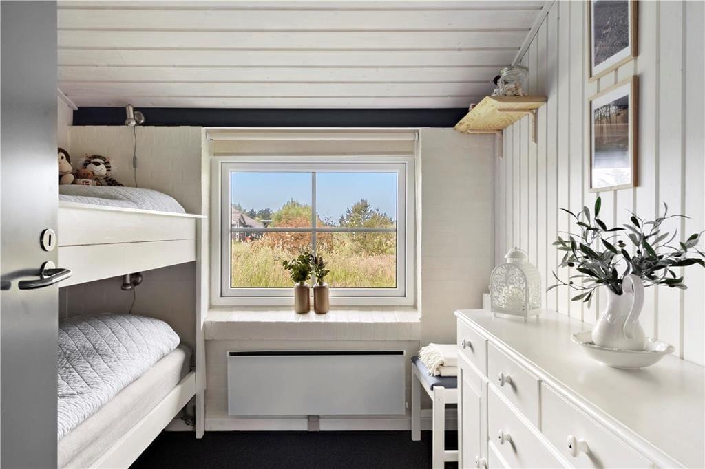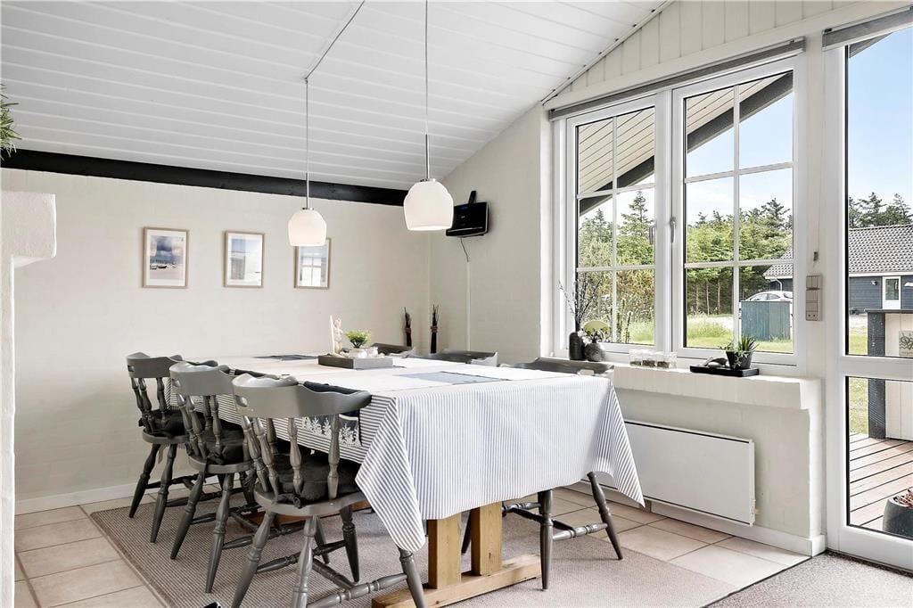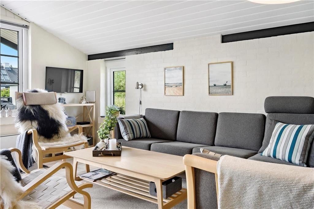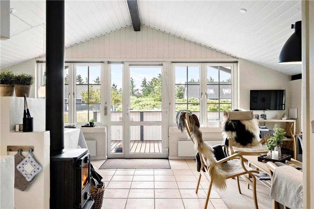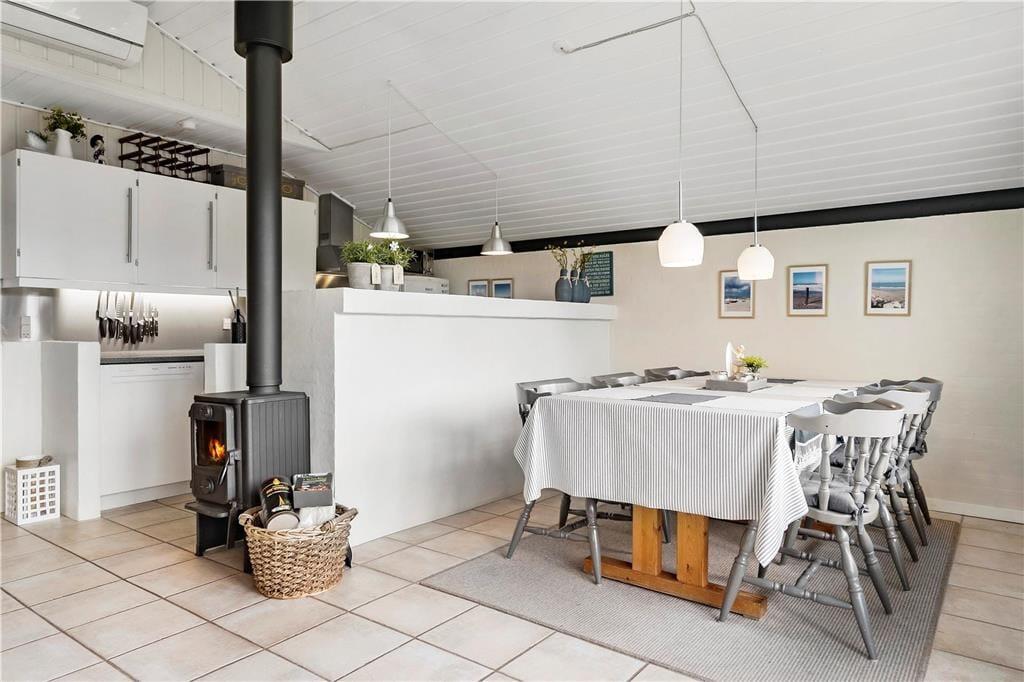 Når du træder ind i sommerhuset, bliver du straks mødt af en hyggelig og hjemlig atmosfære. Den åbne opholdsstue danner husets hjerte, hvor store vinduespartier lader lyset strømme ind og skaber en behagelig forbindelse til naturen udenfor. Her kan du samles med familie og venner til hyggelige måltider, brætspil eller afslappende aftener foran den knitrende brændeovn. Derudover sikrer en moderne varmepumpe, at indeklimaet altid er behageligt – uanset årstid. Køkkenet er veludstyret, så du nemt kan tilberede lækre måltider, mens I nyder samværet. Med plads til seks personer fordelt på tre soveværelser er der rig mulighed for at finde ro og få en god nats søvn efter en dag fyldt med oplevelser i det smukke Thy.