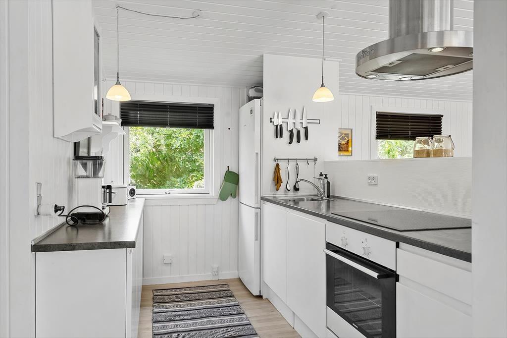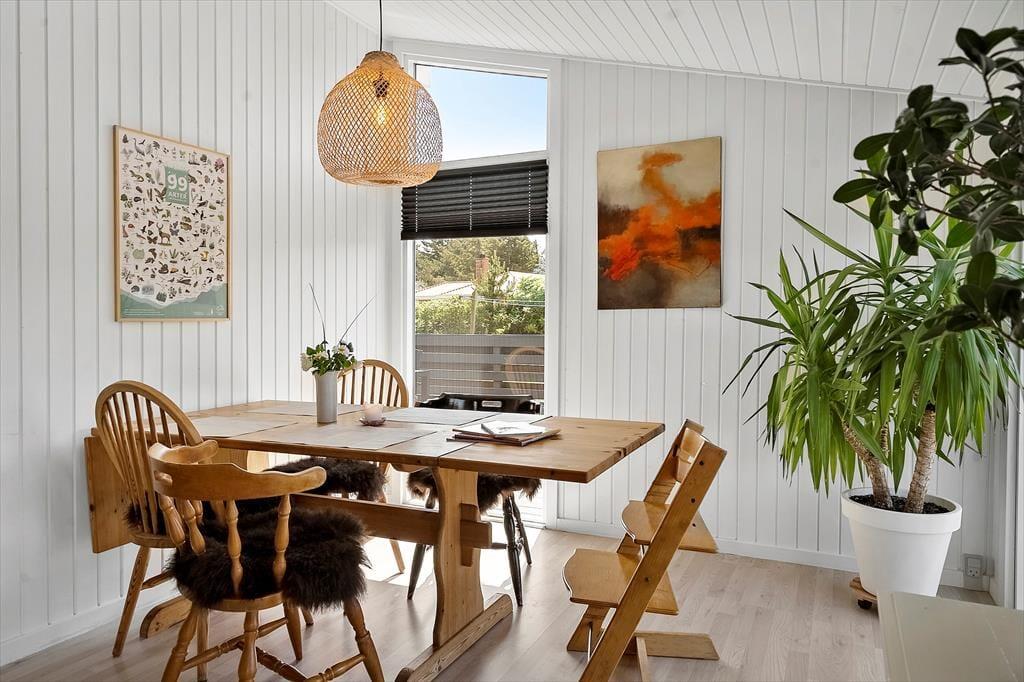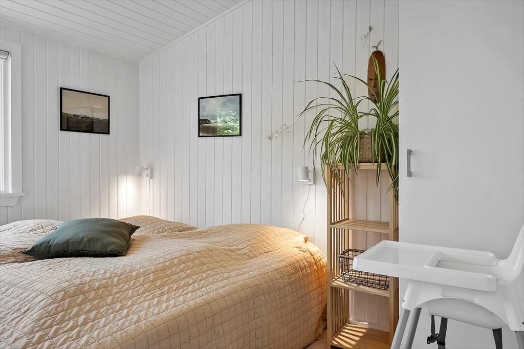 Når du træder indenfor i dette hyggelige sommerhus, mødes du af en varm og indbydende atmosfære. Indretningen emmer af charme og enkelhed, og brændeovnen i stuen sørger for en ekstra hyggelig stemning på kølige aftener. Saml familien om en god film, en brætspilsaften eller nyd stilheden med en kop kaffe, mens flammerne danser i brændeovnen. Her er plads til at koble af og nyde hinandens selskab, uanset om I er afsted som en lille familie eller et par, der ønsker en rolig ferie.