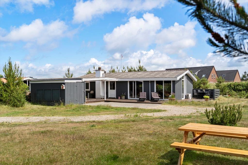 Sommerhuset ligger på en dejlig naturgrund, hvor du kan trække frisk luft og nyde ferielivet i det fri. Børnene kan more sig med leg i haven og på gyngestativet, mens du nyder solen på terrassen med en god bog eller et glas vin. Her kan du starte dagen med morgenkaffe under åben himmel og afslutte den med en hyggelig grillaften, mens solen går ned bag klitterne. Området er ideelt til afslapning, men giver også mulighed for aktiviteter i naturen – uanset om du foretrækker en stille stund eller en aktiv ferie.