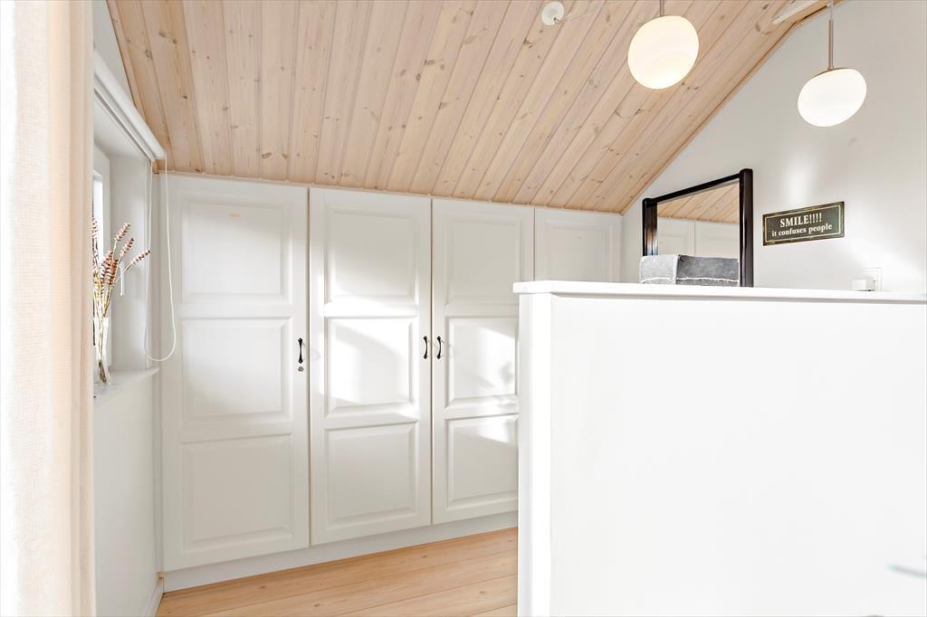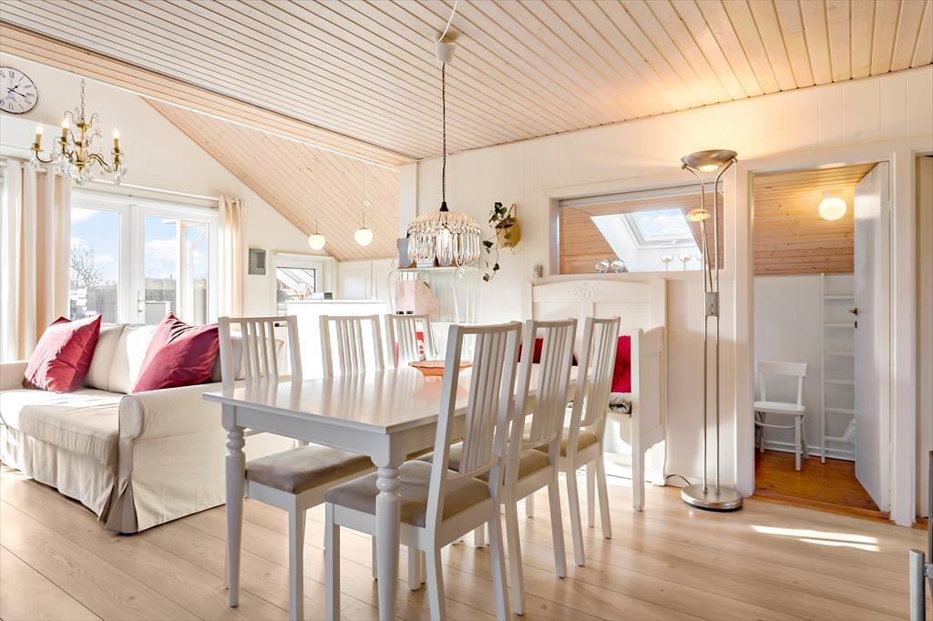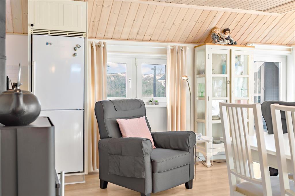 Træd indenfor i dette dejlige sommerhus, hvor en varm og indbydende atmosfære straks møder dig. Her skaber den moderne, men hyggelige indretning en skøn ramme om ferien, uanset om du søger afslapning eller kvalitetstid med familien. I stuen kan du samles omkring brændeovnen, hvis flammer spreder varme og hygge på kølige aftener, mens varmepumpen sikrer en behagelig temperatur året rundt. Huset er indrettet med et åbent opholdsrum, der kombinerer køkken, spiseområde og stue, så samværet altid er i centrum. De bløde møbler og den lyse, nordiske stil inviterer til afslapning med en god bog eller en brætspilsaften efter en dag med frisk havluft.