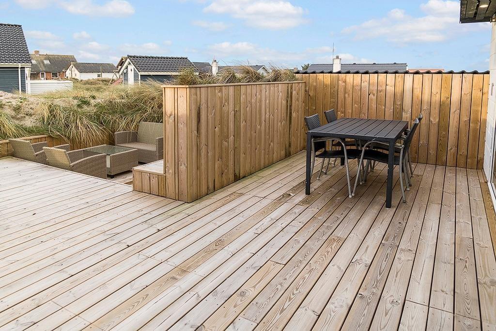 På husets dejlige terrasse kan du nyde udsigten til det naturskønne område og føle dig i ét med omgivelserne. Start dagen med morgenkaffen i den friske luft, mens solen står op, og lad aftenerne forløbe i hyggelige rammer med grillmad og lyden af havets brusen i baggrunden. Med både åbne og mere afskærmede områder kan du altid finde en skøn krog at slå dig ned i, uanset vejret.