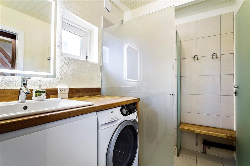 Træd ind i et rummeligt sommerhus, der emmer af hygge og afslapning. Med plads til op til 8 personer fordelt på fire soveværelser, er der rig mulighed for at samle både familie og venner. Den åbne stue er indrettet med komfortable møbler og en brændeovn, der indbyder til hyggelige aftener med spil og samtaler, mens flammerne knitrer og spreder varme. Køkkenet er praktisk integreret i opholdsrummet, hvilket gør det nemt at tilberede måltider, mens du stadig er en del af fællesskabet.