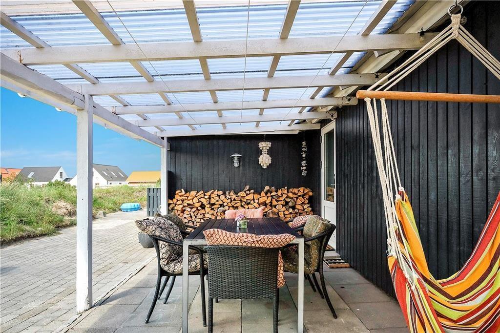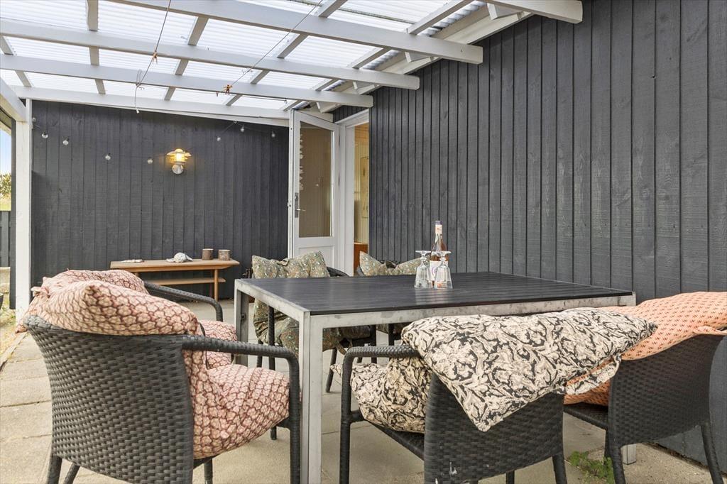 Når vejret viser sig fra sin bedste side, kan du træde ud på den hyggelige terrasse og lade solen varme dit ansigt. Terrassen giver god plads til både morgenkaffe i de tidlige timer og lange grillaftener under den åbne himmel. På den fredelige grund kan børnene lege frit, mens du nyder en stund med afslapning i liggestolen. Vorupørs unikke natur ligger lige uden for døren, så en dagstur til stranden eller en frisk gåtur i klitterne er oplagte muligheder. Her er det nemt at lade sig opsluge af Vesterhavets skønhed og den rolige feriestemning.