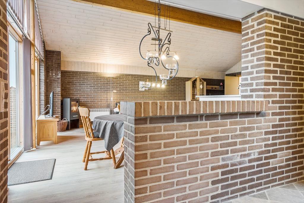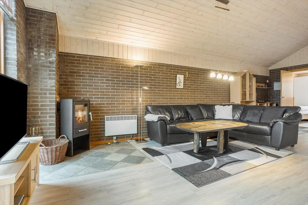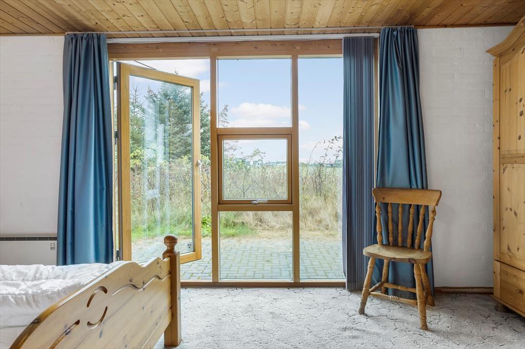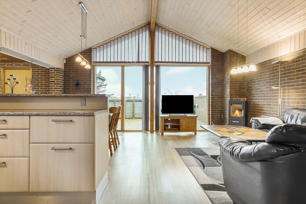 Sommerhuset på Kuttervej 8 emmer af klassisk sommerhusstemning med en indbydende og varm atmosfære. Når du træder indenfor, bliver du mødt af et lyst og åbent opholdsrum, hvor stue, spiseplads og køkken går i ét. Midt i rummet står husets brændeovn, der sørger for en hyggelig stemning og dejlig varme – perfekt til en kølig aften efter en dag ved stranden. Med plads til seks personer er sommerhuset ideelt for både familier og vennegrupper, der ønsker at nyde ferien sammen i hyggelige omgivelser. De store vinduer lukker dagslyset ind og skaber en dejlig forbindelse til naturen udenfor, så du aldrig er langt fra Vorupørs særlige stemning.