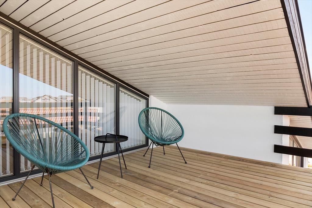 Udenfor venter en skøn terrasse, hvor du kan starte dagen med morgenkaffe i den friske havluft eller nyde et lækkert grillmåltid, mens solen går ned. Den store grund giver plads til leg og samvær, uanset om du vil spille bold, slappe af med en bog eller bare nyde stilheden. Og da alle husdyr er velkomne, kan hele familien, inklusiv firbenede venner, være med til at nyde ferien sammen.