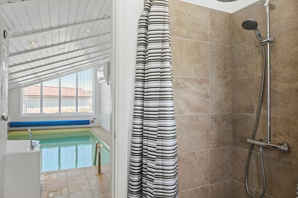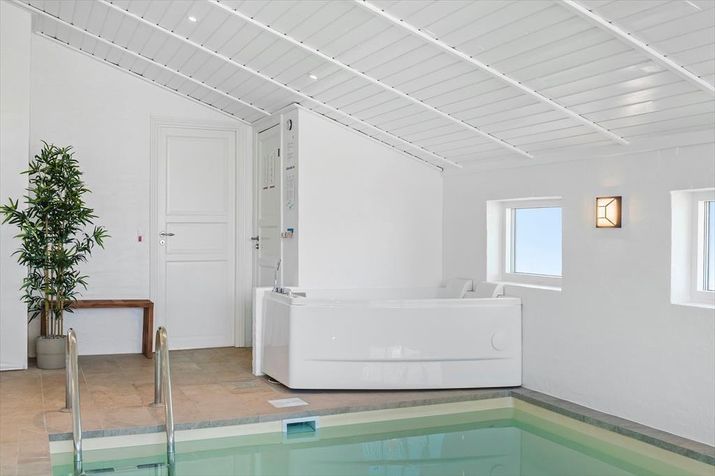 Når du træder ind i sommerhuset, møder du en stemning af varme og charme. Stuen indbyder til hyggelige stunder foran brændeovnen, hvor du kan nyde en kop kaffe, mens flammerne knitrer og spreder en behagelig varme i rummet. Husets hjerte er uden tvivl poolafdelingen, hvor både børn og voksne kan more sig i vandet dagen lang. Efter en svømmetur kan du forkæle dig selv med en afslappende tur i saunaen, som fuldender oplevelsen af luksus og velvære. Her får du et sommerhus, der er skabt til at samle familie og venner om hyggelige og afslappende øjeblikke.