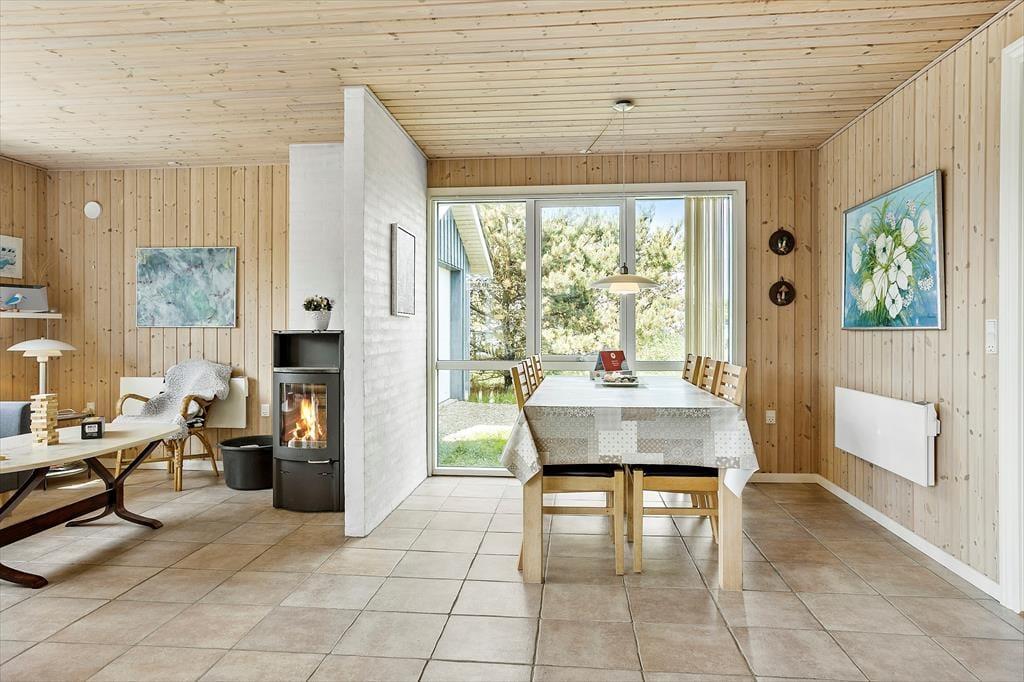 Når du træder ind i dette sommerhus, bliver du straks mødt af en stemning af varme og velvære. Her er der kælet for hyggen med en indretning, der inviterer til samvær og afslapning. Stuen er indrettet med komfortable møbler, hvor du kan slå dig ned efter en dag i den friske luft, og på kølige aftener skaber brændeovnen en særlig stemning, mens flammerne knitrer i baggrunden. Køkkenet ligger i åben forbindelse med stuen, så du kan være en del af selskabet, mens du tilbereder dagens måltider. Huset rummer plads til seks personer, hvilket gør det oplagt til både familieferier og hyggelige ophold med venner.