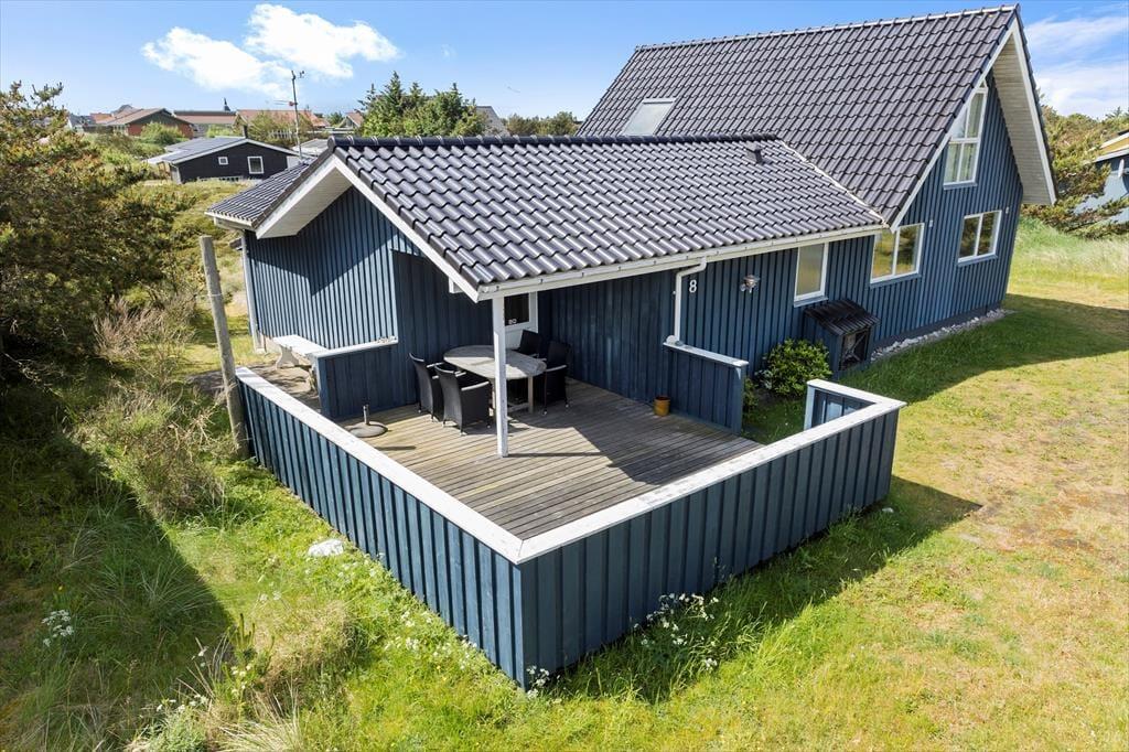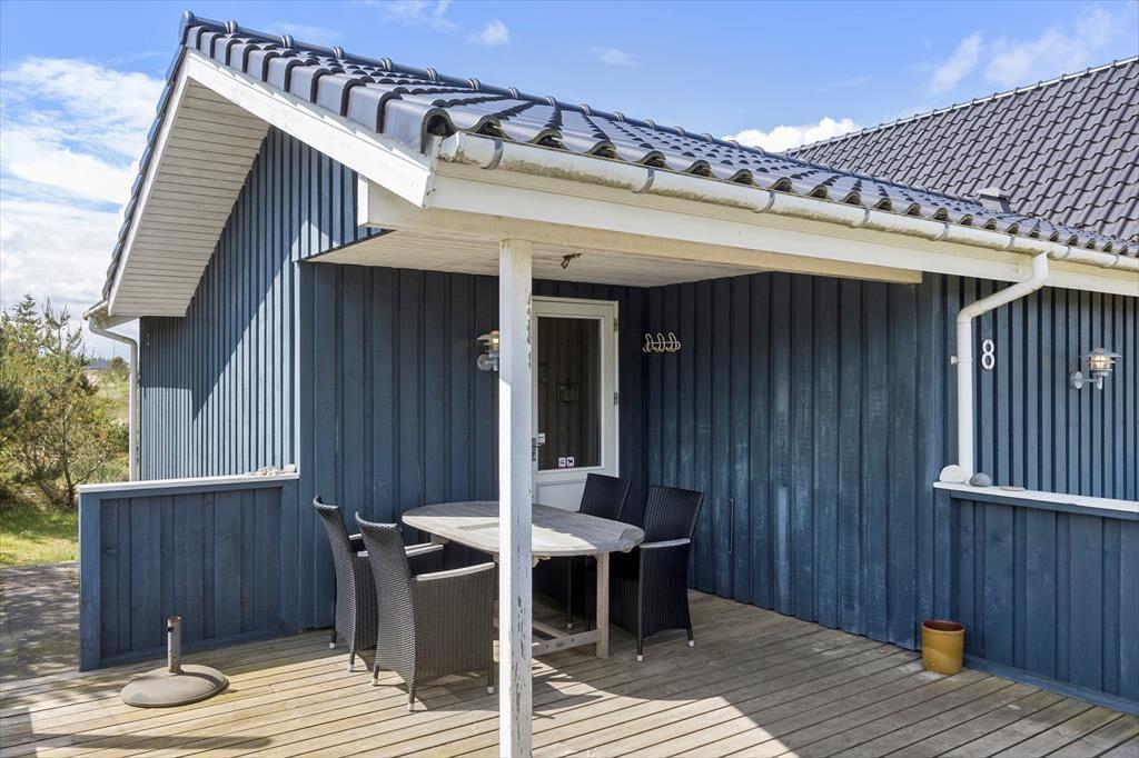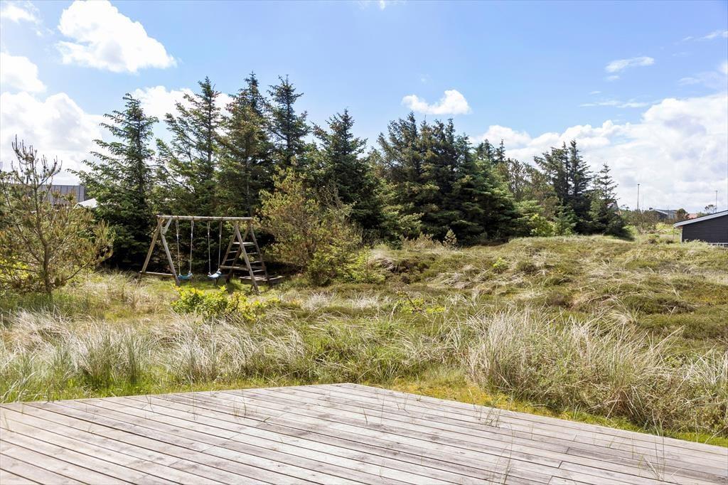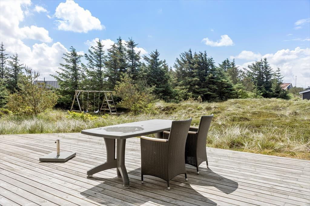 Udendørs venter en terrasse, hvor du kan nyde dagens måltider under åben himmel, mens du lader blikket vandre ud over landskabet og havet i horisonten. Herfra kan du følge med i vejrets skiftende nuancer og måske endda spotte en flok surfere ride på Vesterhavets bølger. Sommerhuset er omgivet af natur, der indbyder til afslapning og lange, langsomme morgener med en kop kaffe i hånden. Når aftenen falder på, kan du tænde op i grillen og nyde et måltid i den friske luft, mens solen går ned bag klitterne.