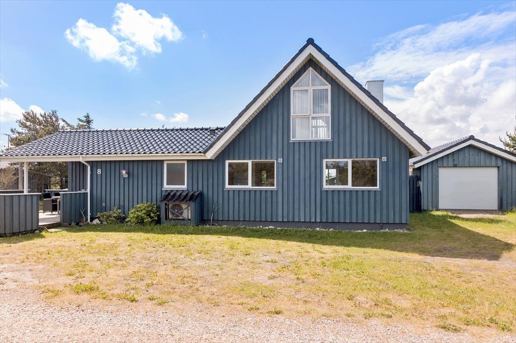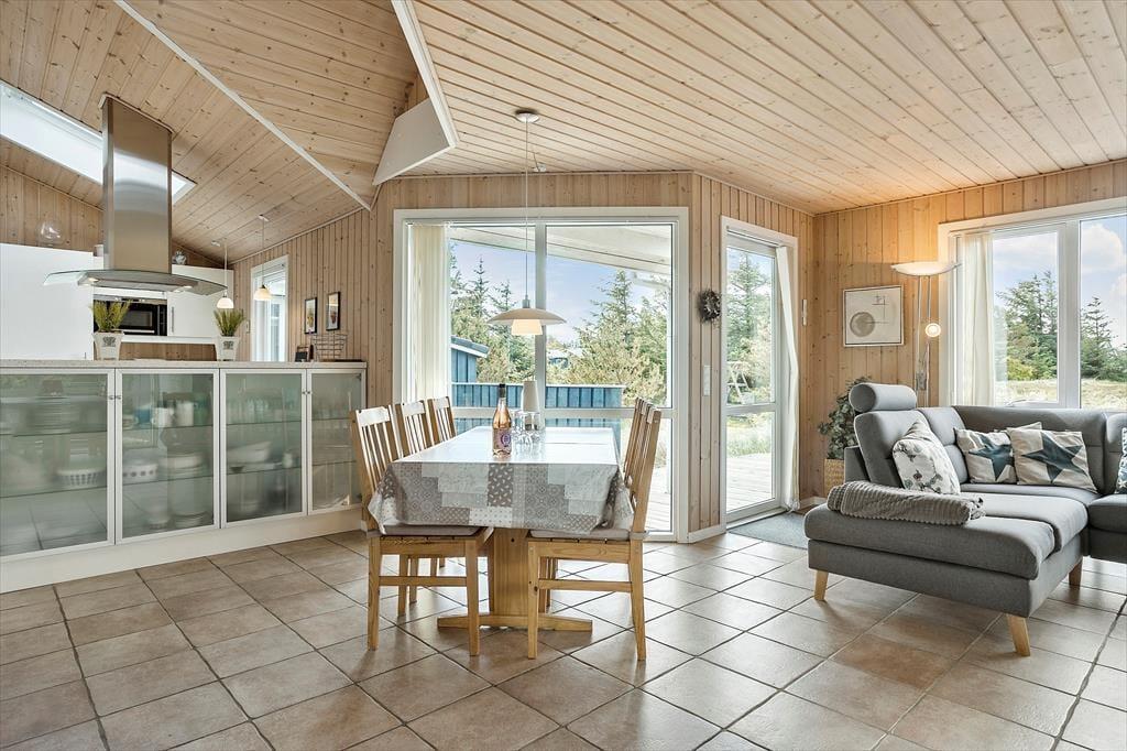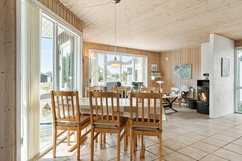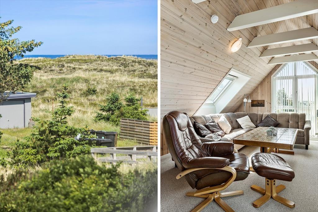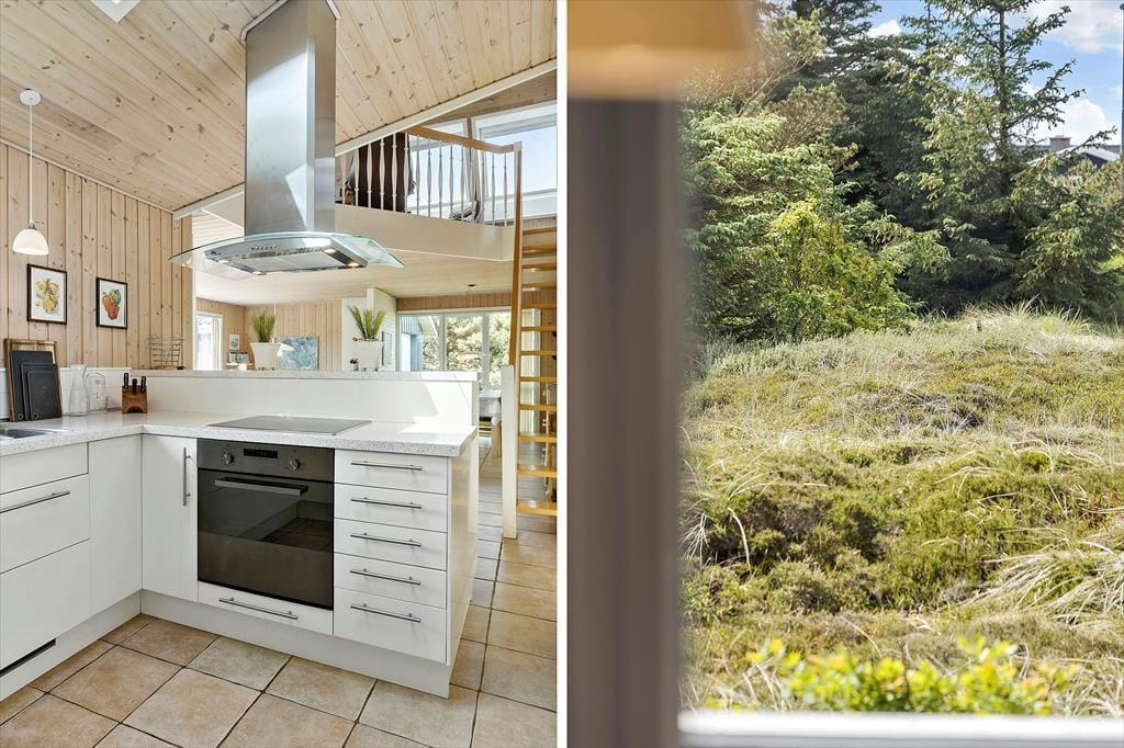 Udendørs venter en terrasse, hvor du kan nyde dagens måltider under åben himmel, mens du lader blikket vandre ud over landskabet og havet i horisonten. Herfra kan du følge med i vejrets skiftende nuancer og måske endda spotte en flok surfere ride på Vesterhavets bølger. Sommerhuset er omgivet af natur, der indbyder til afslapning og lange, langsomme morgener med en kop kaffe i hånden. Når aftenen falder på, kan du tænde op i grillen og nyde et måltid i den friske luft, mens solen går ned bag klitterne.