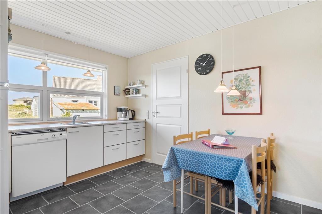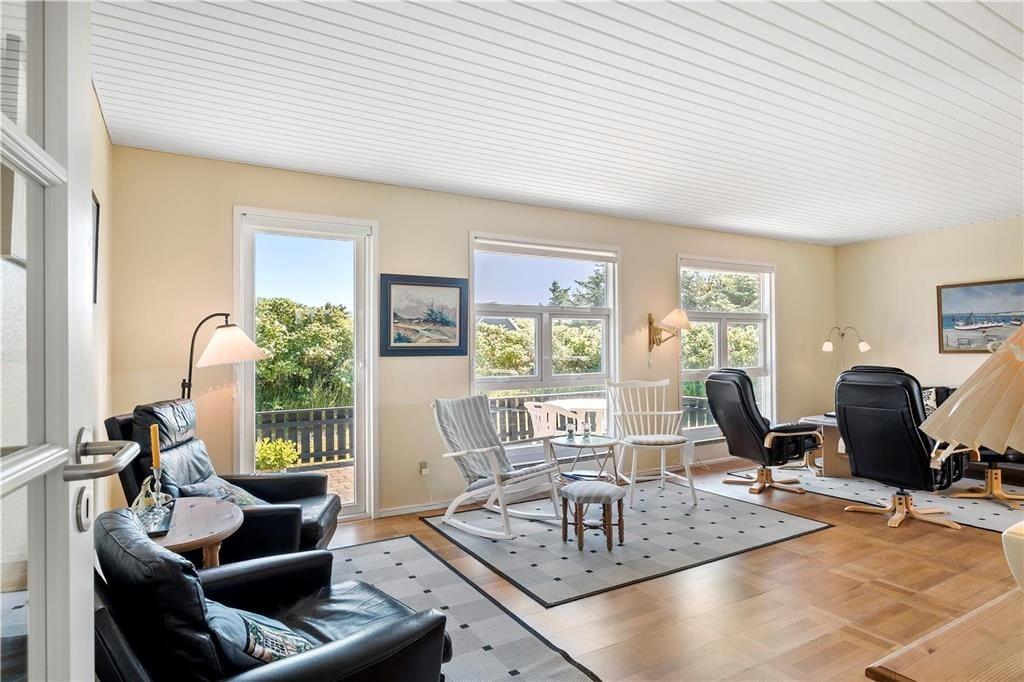 Når du træder ind i sommerhuset, mødes du af en lys og rummelig atmosfære, hvor hyggen hurtigt indfinder sig. Stuen er indrettet med komfortable møbler og en brændeovn, der spreder varme og stemning på kølige dage. Forestil dig at synke ned i sofaen efter en dag ved havet, mens flammerne knitrer i baggrunden, og du nyder et godt glas vin eller en kop varm kakao. Køkkenet er funktionelt og åbent, så du kan tilberede lækre måltider uden at gå glip af samværet.
