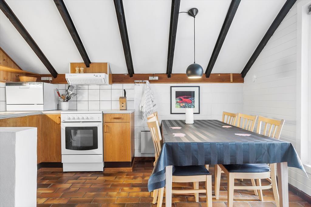 Når du træder ind i dette hyggelige sommerhus, bliver du mødt af en varm og indbydende atmosfære. Huset er indrettet med en brændeovn, der skaber en behagelig varme og en hyggelig stemning på de kølige aftener. Samtidig sikrer de energibesparende opvarmningsmuligheder, at du kan holde en komfortabel temperatur året rundt. Stuen er et dejligt samlingspunkt for familien, hvor man kan nyde hyggelige stunder foran brændeovnen, spille spil eller se en god film. Køkkenet er veludstyret og gør det nemt at tilberede måltider, som kan nydes i det tilstødende spiseområde. Med plads til en lille familie og mulighed for at medbringe op til to husdyr, er dette sommerhus det perfekte valg for en ferie, hvor alle kan være sammen.