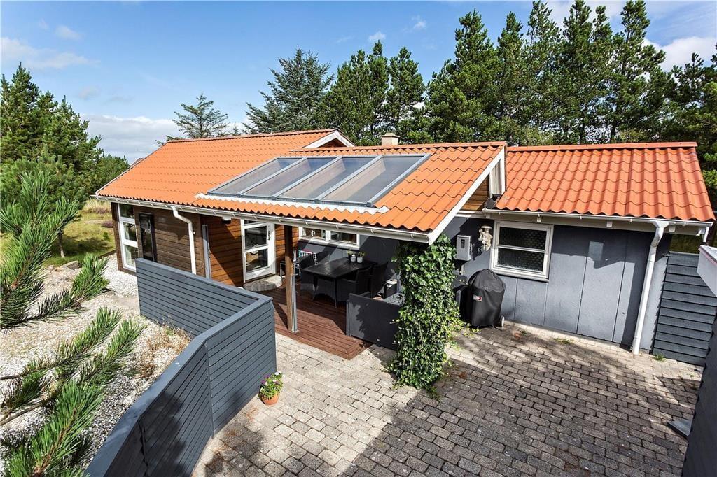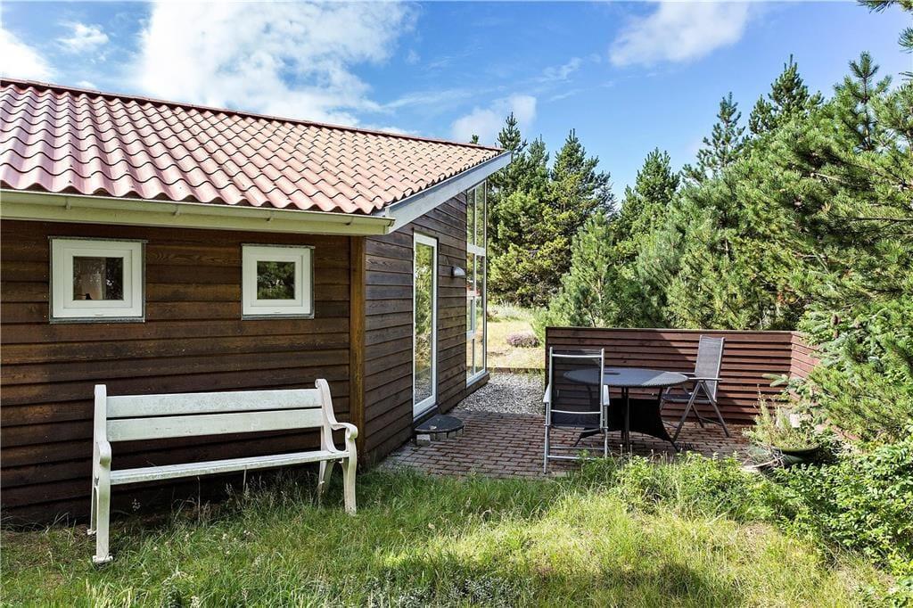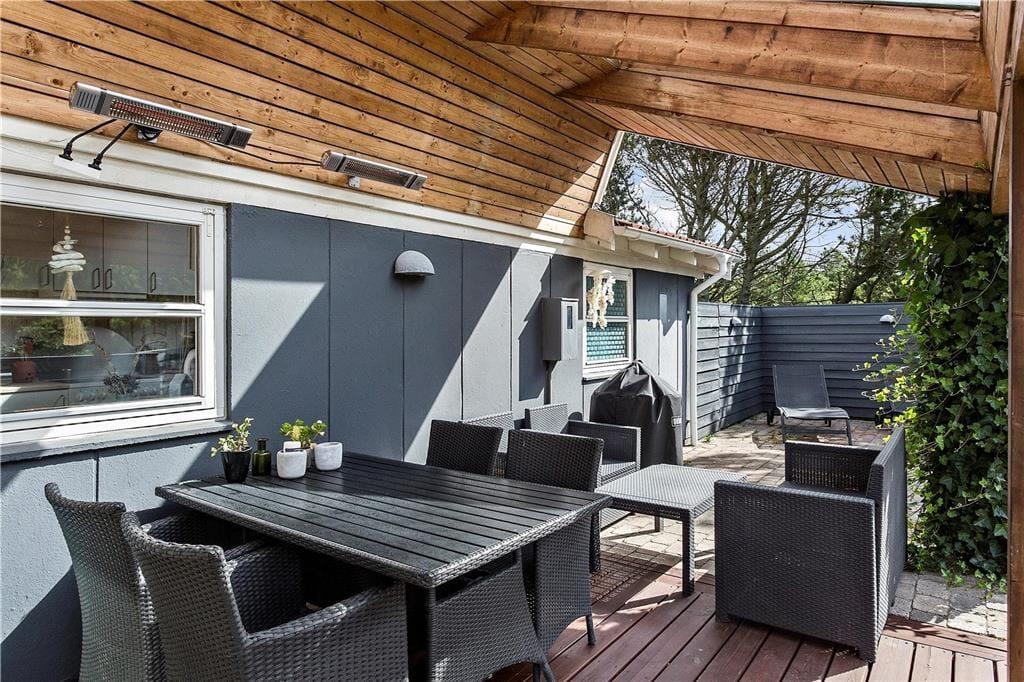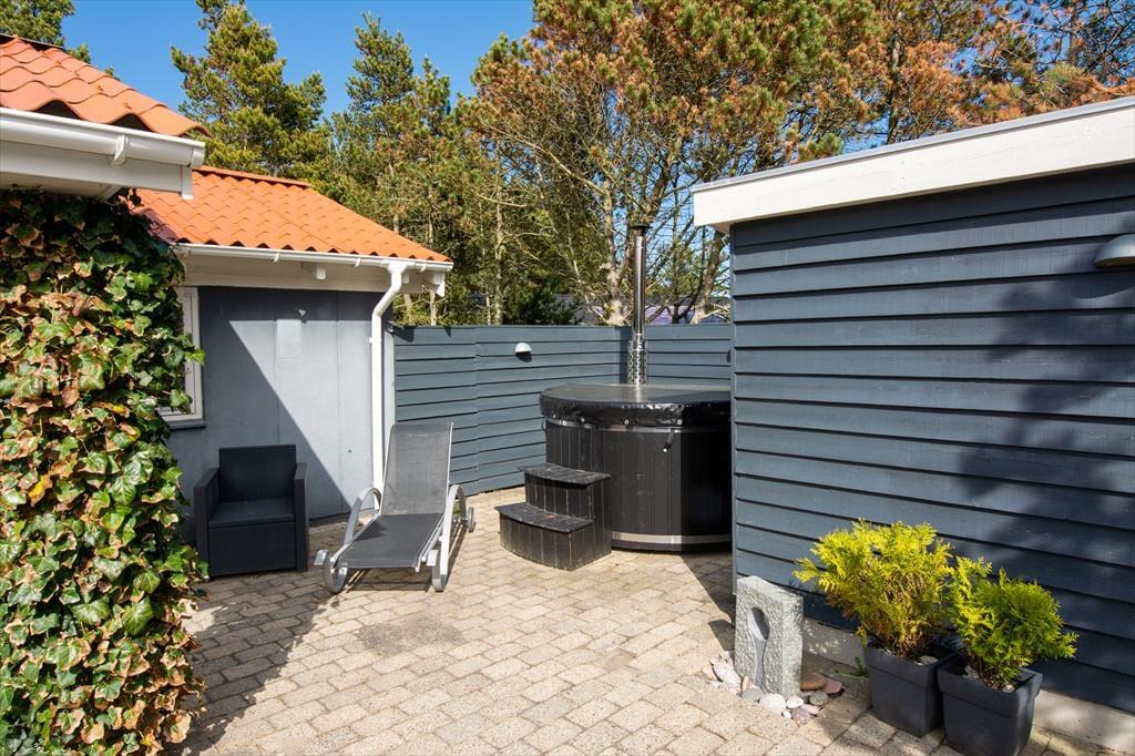 Når du træder udenfor, bliver du mødt af en dejlig naturgrund, hvor du kan nyde de rolige omgivelser og lyden af Vesterhavets bølger i det fjerne. Den rummelige terrasse indbyder til afslapning fra morgen til aften – start dagen med en kop kaffe i den friske luft eller slut den af med en lækker grillmiddag under åben himmel. Og som prikken over i’et kan du sænke dig ned i det varme vildmarksbad og lade kroppen slappe helt af, mens du nyder udsigten til de naturskønne omgivelser. Her får du den ultimative ferieoplevelse med velvære og nærvær i fokus.