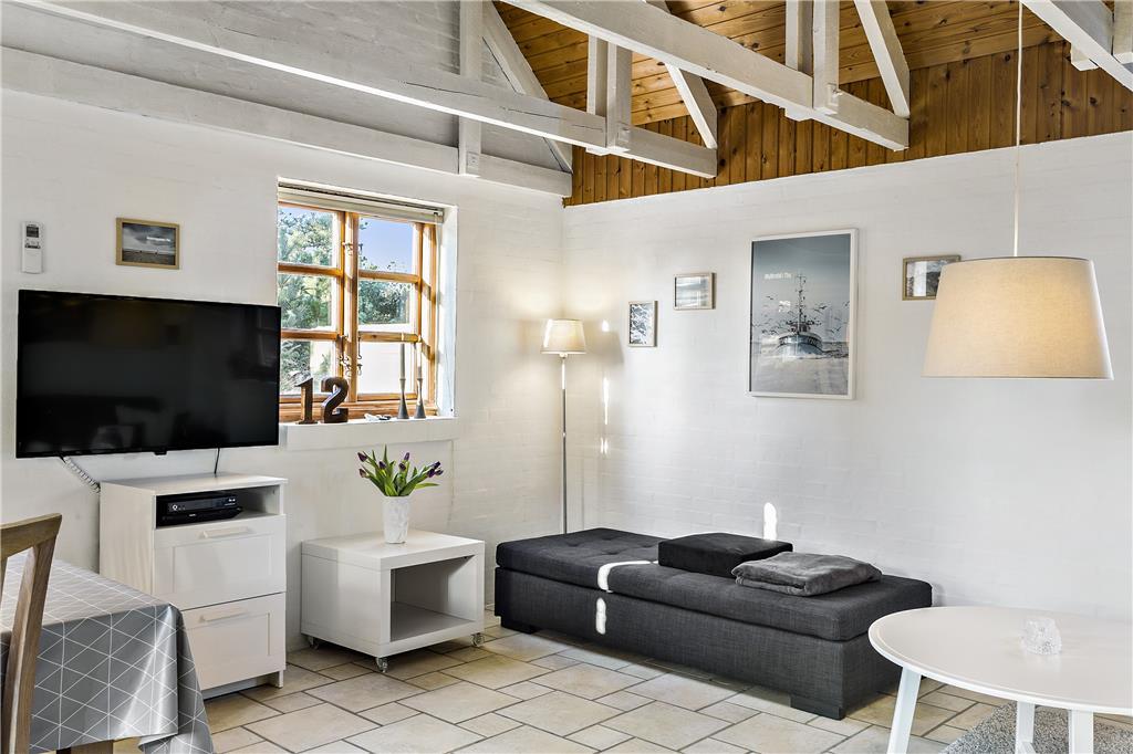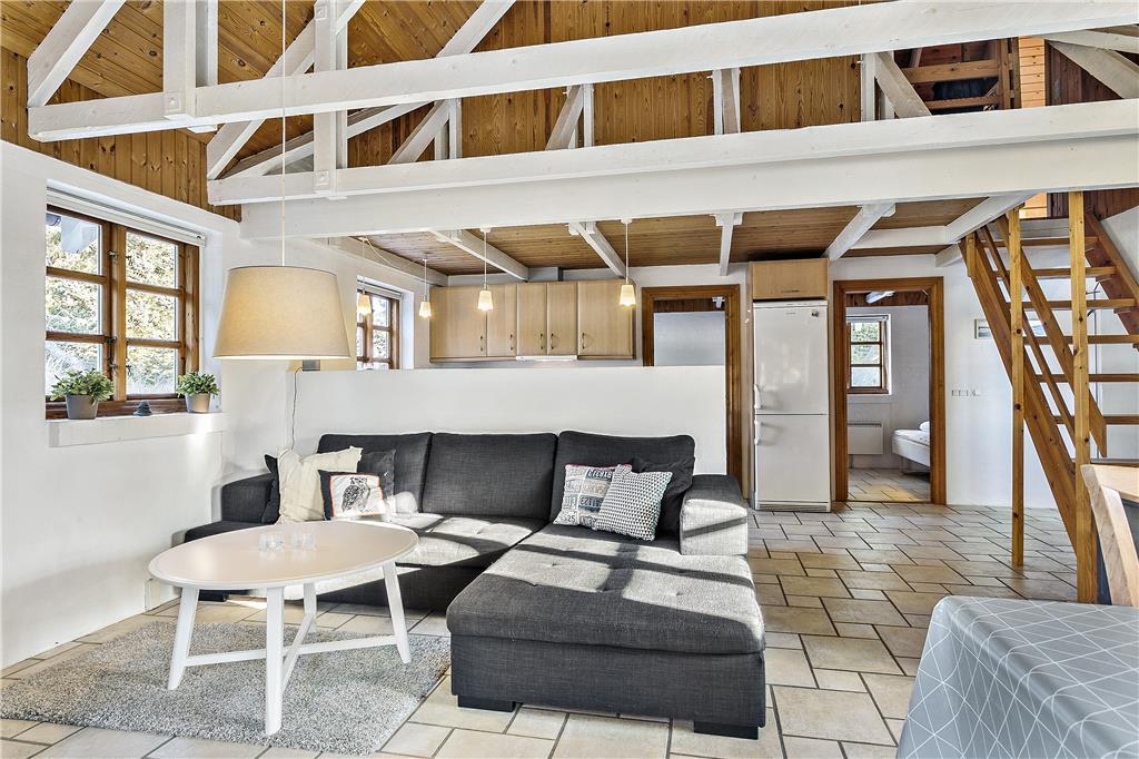 Træd indenfor i dette hyggelige sommerhus, hvor den varme og indbydende atmosfære straks byder dig velkommen. Stuen er hjemmets naturlige samlingspunkt, hvor du kan slænge dig i sofaen med en god bog eller nyde en aften med brætspil og hyggesnak. Brændeovnen sørger for ekstra varme og hygge, særligt på kølige dage, hvor flammerne knitrer og spreder en rolig stemning i rummet.