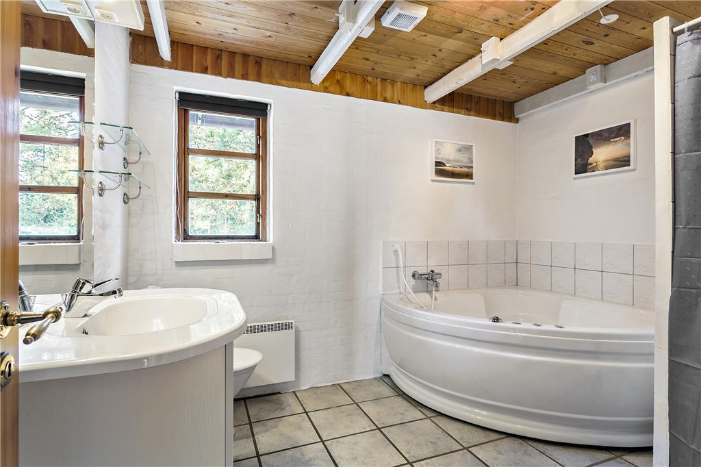 Når du træder udenfor, møder du en fantastisk natur, der inviterer til afslapning og nærvær. Sommerhuset ligger på en dejlig grund omgivet af lyngklædte arealer, der skaber en idyllisk og uforstyrret ferieoplevelse. Her er masser af plads til leg og afslapning, hvad enten du vil nyde morgensolen med en kop kaffe eller samle familien til en hyggelig grillaften under åben himmel.