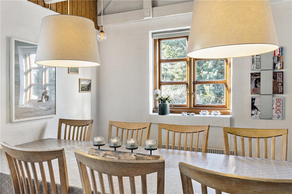 Sommerhuset er indrettet, så det danner de perfekte rammer om en afslappende ferie. Køkkenet ligger i åben forbindelse med stuen, så du kan lave mad, mens du stadig kan deltage i samtalen ved spisebordet. Der er plads til både store og små i huset, og værelserne giver mulighed for en god nats søvn efter en dag fyldt med oplevelser i den skønne natur.