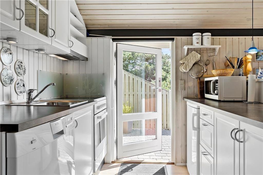 Udenfor venter en verden af muligheder for at sænke tempoet og nyde sommerhuslivets glæder. Terrassen er det oplagte sted at starte dagen med en varm kop kaffe, mens fuglene kvidrer i baggrunden, og lyset blødt falder over klitterne. På de lune eftermiddage kan du slå dig ned i en havestol og lade solen varme kinderne, mens en let brise fra havet minder dig om, at stranden aldrig er langt væk. For de aktive er der plads til både boldspil og udendørslege, mens andre kan snuppe en rolig stund i liggestolen med en god bog. Lyden af brændeovnens knitren kan også nydes udefra, hvis I lader døren stå på klem, og der er intet som duften af frisklavet aftensmad på grillen, mens solen går ned over klitlandskabet. Her kan I bruge timerne i hinandens selskab og fornemme, hvordan feriens ro og nærhed får lov at folde sig helt ud.