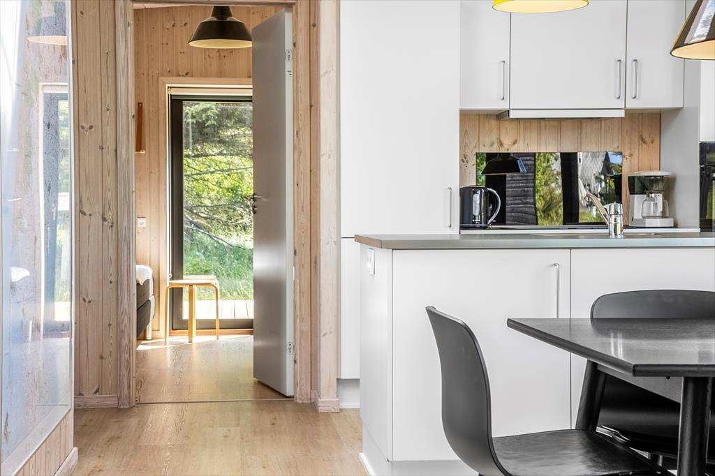 Når du træder indenfor i dette charmerende sommerhus på Bredkærvej 9, mærker du straks den velkomne atmosfære, som indbyder til afslapning og hygge. Det åbne og lyse interiør emmer af ro og stilfuld indretning, hvor moderne bekvemmeligheder smelter sammen med en varm og indbydende stemning. De store vinduer lader solens stråler strømme ind og kaste et naturligt lys over de nøje udvalgte materialer og farvetoner, som er med til at skabe en rolig base for din ferie. Duften af friske, naturlige elementer og den subtile duft af nyslået græs udenfor kan næsten mærkes, selv inden du sætter dig. Her er plads til at lade tankerne flyve, mens du slapper af i en hyggelig stue, der inviterer til samvær, lange snakke og uforglemmelige stunder med dine kære.