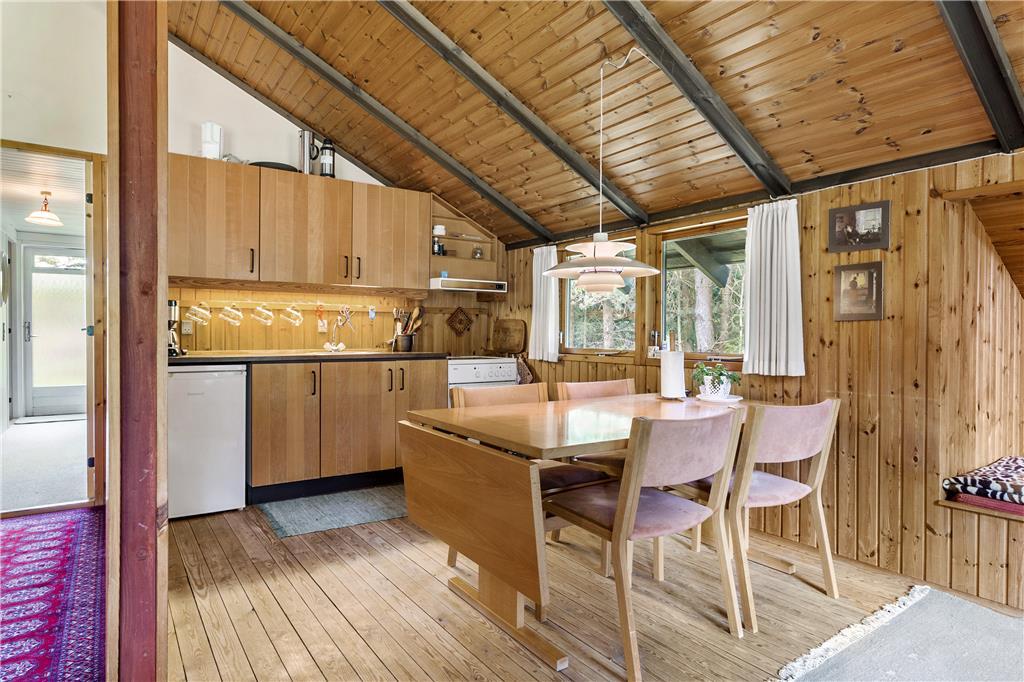 Træd indenfor i dette skønne sommerhus, hvor den klassiske indretning og den varme atmosfære straks byder dig velkommen. Her møder du en stue, der inviterer til både afslapning og samvær – med den knitrende brændeovn som midtpunkt, der skaber en behagelig og intim stemning, når mørket falder på. Indretningen er tidløs og elegant, med fokus på komfort og hygge, så du hurtigt føler, at du er kommet hjem. De lyse rum og de omhyggeligt udvalgte detaljer understøtter en stemning af afslappet luksus, der vækker sanserne og indbyder til både lange, rolige dage og hyggelige aftener. Her kan du mærke historiens præg kombineret med nutidens bekvemmeligheder – et sted, hvor minder skabes, og hvor hver en krog fortæller sin egen lille historie om ro og livskvalitet.