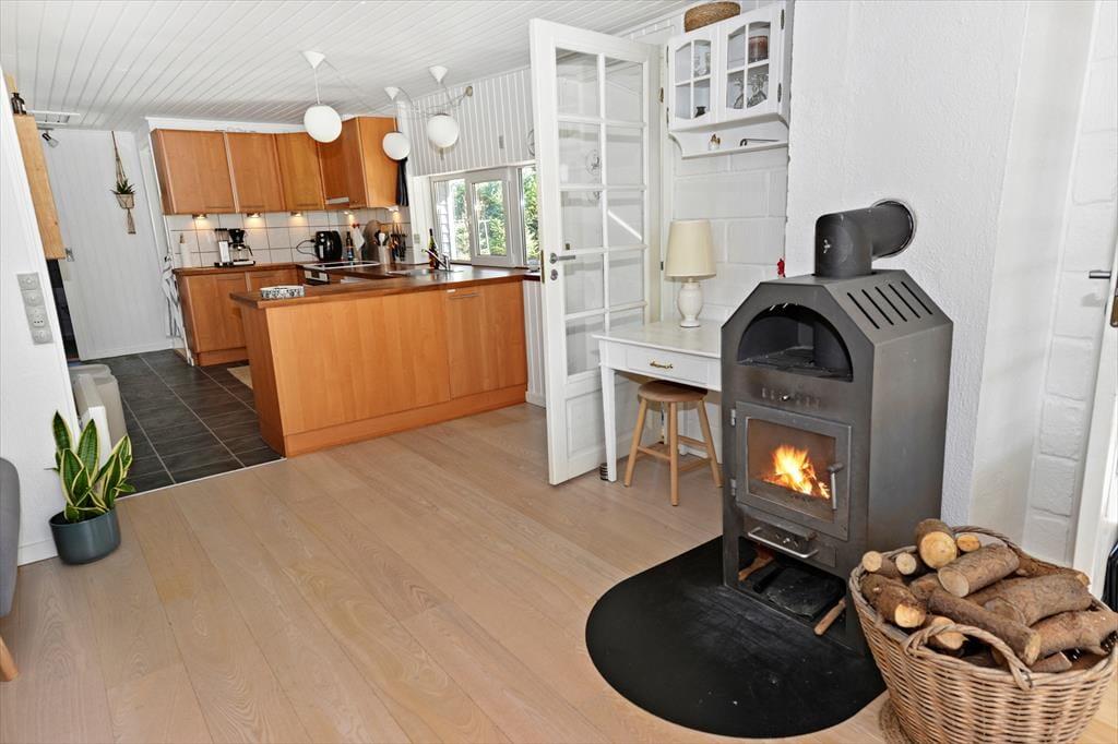 Træd indenfor i dette klassiske sommerhus, hvor du med det samme mærker den varme og indbydende atmosfære, som er skabt med omtanke for både komfort og hygge. Den centrale plads i stuen, hvor den charmerende brændeovn spreder en blid og behagelig varme, inviterer til lange, hyggelige aftener med gode samtaler og samvær. Det lyse interiør og de nøje udvalgte detaljer afspejler en traditionel, men samtidig tidløs stil, som får dig til at føle dig hjemme med det samme. Med en smart kombination af moderne bekvemmeligheder og en autentisk, rustik stemning, er huset indrettet, så det både appellerer til sanserne og skaber en rolig og afslappet atmosfære. Her kan du sætte dig ned med en god bog, nyde en kop kaffe eller blot lade tankerne flyve, mens du indånder den blide varme fra ovnen og mærker den trygge fornemmelse af et hjem, der emmer af kvalitet og omtanke.