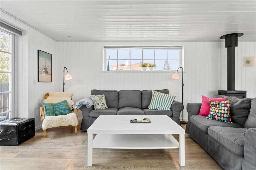 Træd indenfor i dette meget velholdte og smagfuldt indrettede sommerhus, hvor den varme atmosfære straks omfavner dig. Med en indbydende stue, hvor en hyggelig brændeovn spreder en blid og beroligende varme, skaber hjemmet en ramme for lange, hyggelige aftener i godt selskab. De nøje udvalgte detaljer og den omhyggeligt planlagte indretning giver en følelse af både komfort og stil, hvor hvert rum emmer af personligt præg og kvalitet. Forestil dig at nyde en stille stund med en god bog, mens du lytter til den sagte knitren fra brændeovnen, eller at samles med dem, du holder af, i et rum, der emmer af hjemlig hygge og charme. De lyse farver og bløde materialer indbyder til afslapning, og den gennemtænkte indretning giver plads til både ro og kreativitet – alt sammen med tanke på at gøre din ferieoplevelse helt unik og mindeværdig.