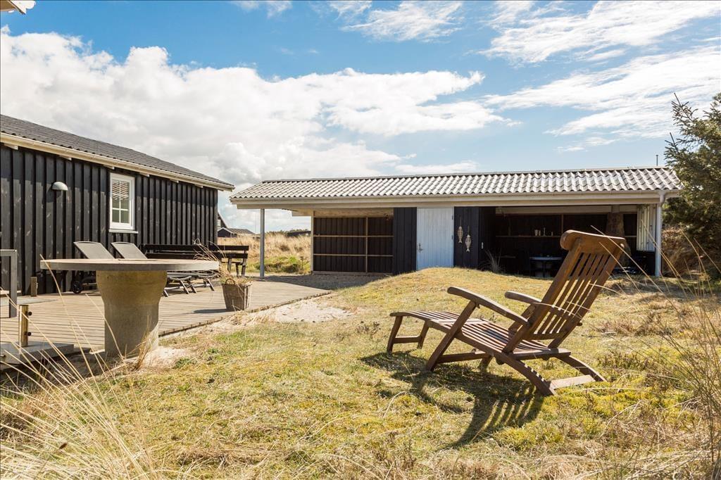 Udenfor venter en skøn oase, hvor den dejlige terrasse inviterer til både afslapning og samvær i det fri. Her kan du starte dagen med en kop friskbrygget kaffe, mens du nyder den friske luft og de rolige omgivelser, eller afslutte dagen med en hyggelig middag under åben himmel. Den velindrettede terrasse er et naturligt samlingspunkt, hvor solens stråler og den milde brise skaber de perfekte rammer for både stille stunder og livlige samtaler. Forestil dig at mærke den blide sommervind, mens du nyder en lækker grillaften med venner eller familie, og de små detaljer i haven, der forstærker følelsen af at være i ét med naturen. Den udendørs plads rummer også muligheder for leg og legende aktiviteter, så både børn og voksne kan nyde feriens glæder i trygge og indbydende omgivelser.