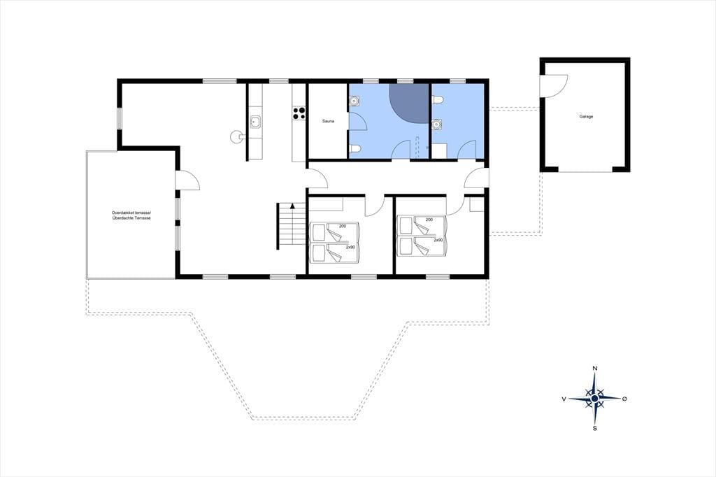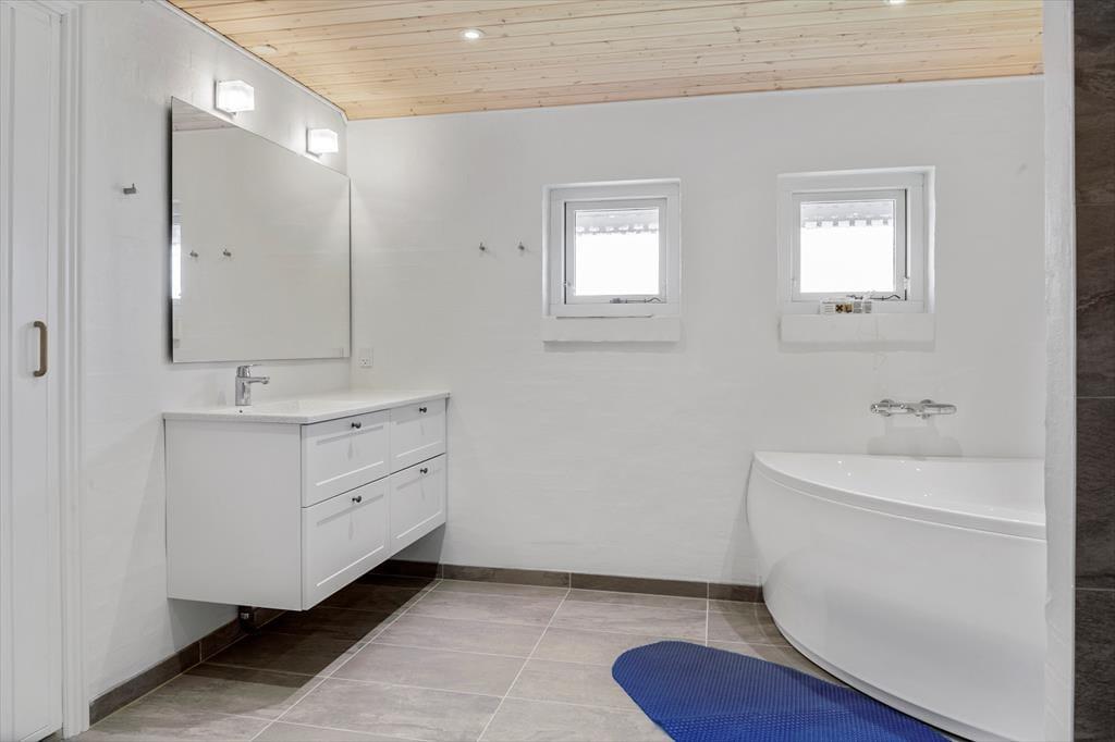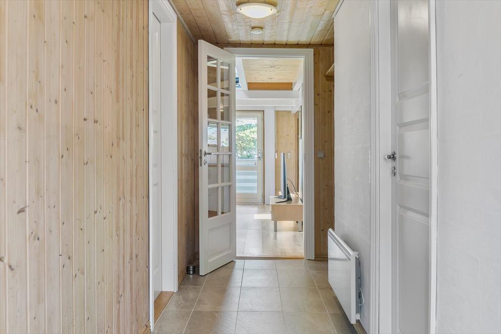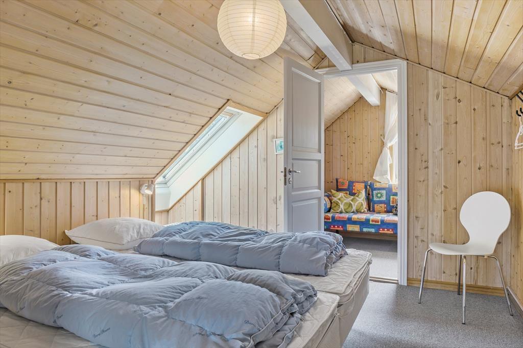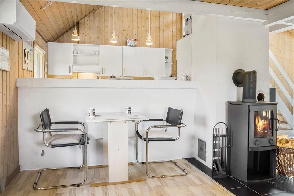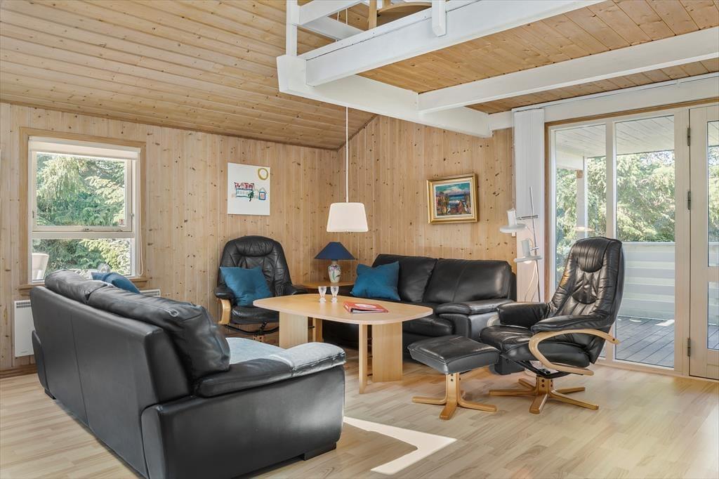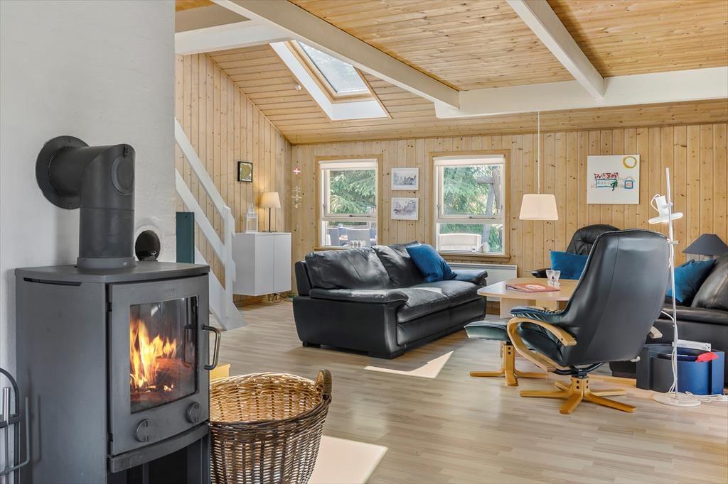 Det meget velholdte sommerhus er indrettet med 2 soverum i stueetagen. Hvert af disse soverum har en dobbeltseng. På 1. sal er der et 3. soverum ligeledes med en dobbeltseng og bagved dette soverum et mindre soverum med en enkelt sovesofa. Sommerhuset udlejes til 7 personer. På 1. sal er der et hyggeligt opholdsrum med stort fladskærms, hvorfra der er pragtfuld udsigt. Det store opholdsrum, med spiseafdeling, brændeovn og ligeledes stort fladskærms-TV, er i stueetagen. Du har gratis wi-fi internet i huset. Køkkenet er veludstyret på alle måder og ligger i åben forbindelse med opholsdrummet. Gæste-WC med vaskemaskine og tørretumbler og stort, luksuriøst badeværelse med spabad og sauna. Der er gulvvarme på det store badeværelse.