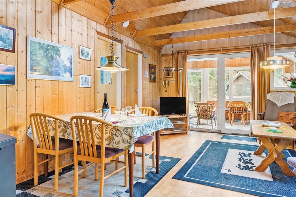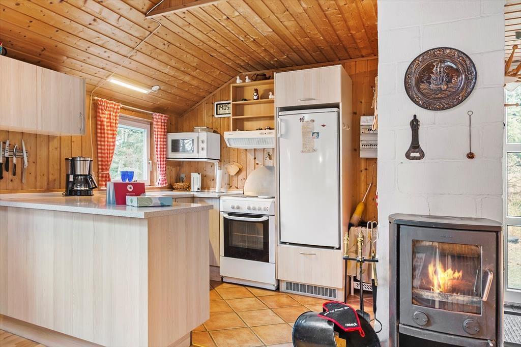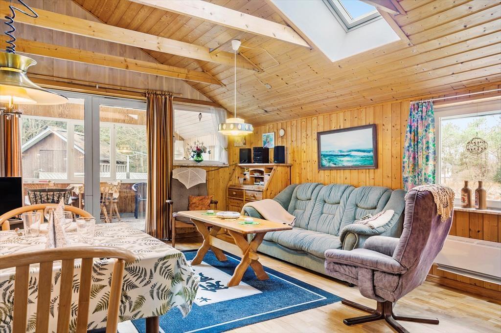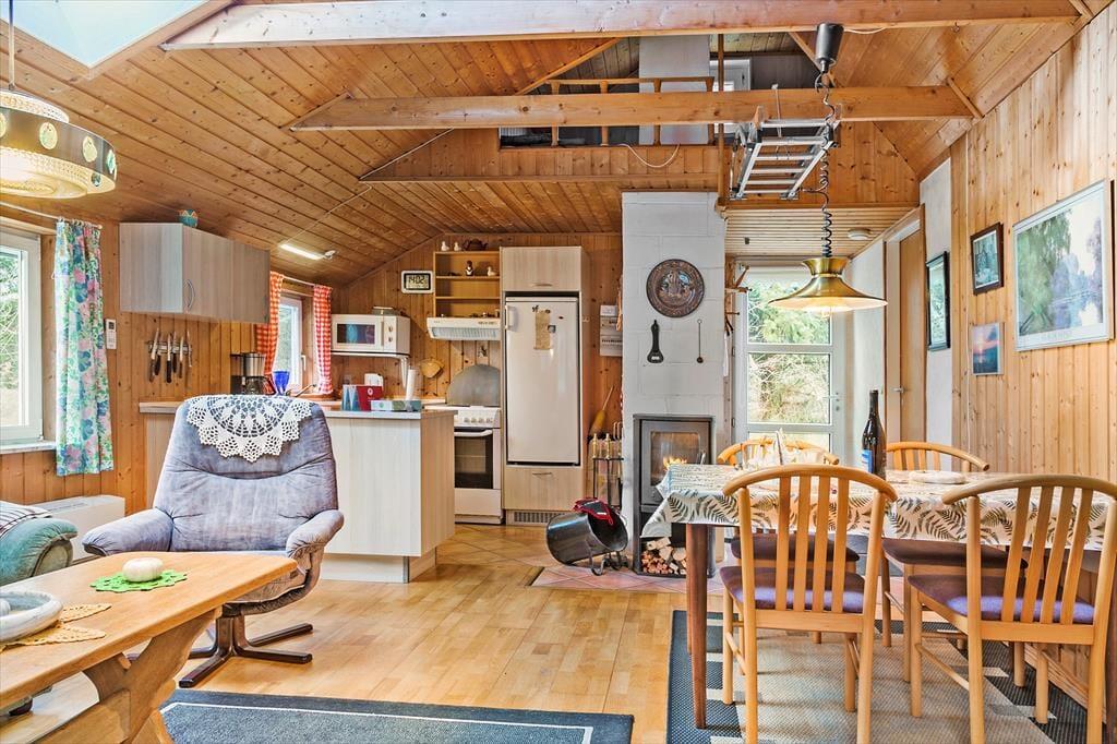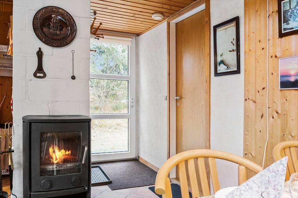 Træd ind i dette klassiske sommerhus, hvor den varme og indbydende atmosfære omfavner dig med det samme. Her finder du en kombination af rustik charme og moderne komfort, der gør opholdet til en sand fornøjelse. Den velplacerede brændeovn skaber en nostalgisk stemning, som indbyder til hyggelige aftener, hvor ilden sprudler og varmen breder sig gennem hele rummet. Den energieffektive varmepumpe sikrer, at du kan nyde en behagelig temperatur uanset sæson, så sommerhusets indre altid føles som et fristed. De omhyggeligt udvalgte materialer og den klassiske indretning med bløde tekstiler og naturlige farver giver en rolig og afslappende følelse, hvor alle sanser vækkes til live. Du kan næsten mærke, hvordan de varme nuancer og den blide belysning gør det let at glemme hverdagens stress og jag, mens du omfavnes af en atmosfære, der lokker til lange, afslappede stunder.